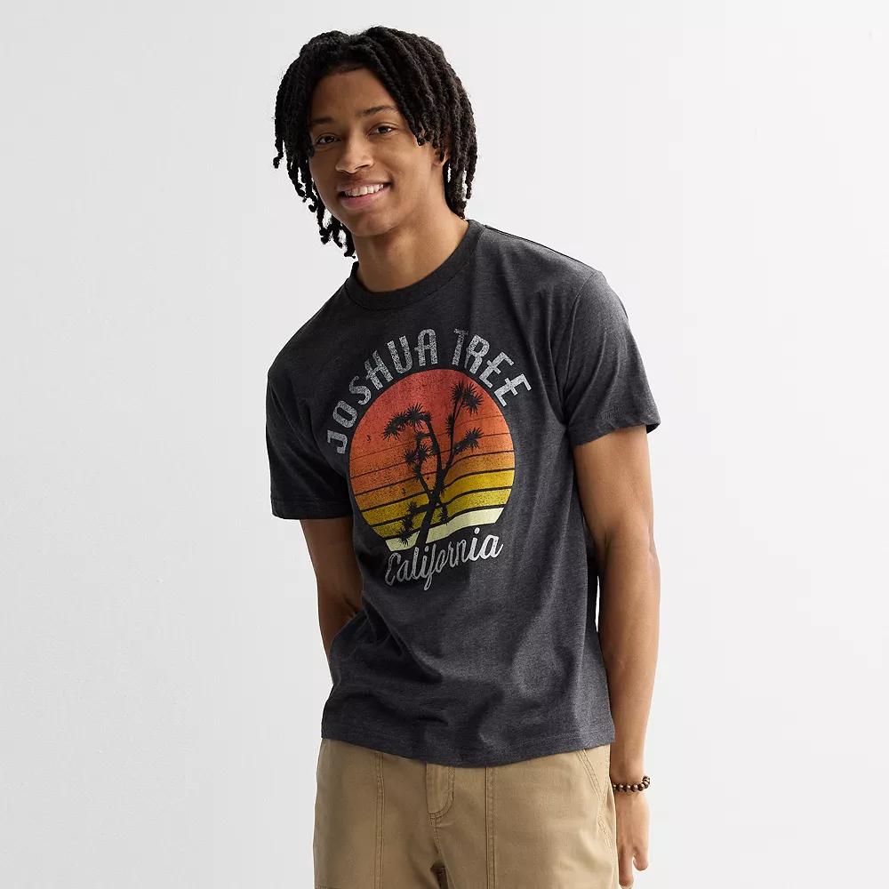 He'll love the look and feel of this Men's Joshua Tree California Sunset Graphic Tee.FEATURES Crewneck Short sleeveFABRIC & CARE Cotton, polyester Machine wash Imported Color: Charcoal Heaher. Gender: male. Age Group: adult.