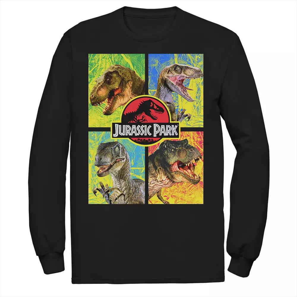 Make your wardrobe prehistoric with this mens Jurassic Park Four Different Dinosaur Faces long sleeve tee. Long sleeves CrewneckFABRIC & CARE Cotton Machine wash Imported Size: XL. Color: Navy. Gender: male. Age Group: adult. Pattern: Graphic.