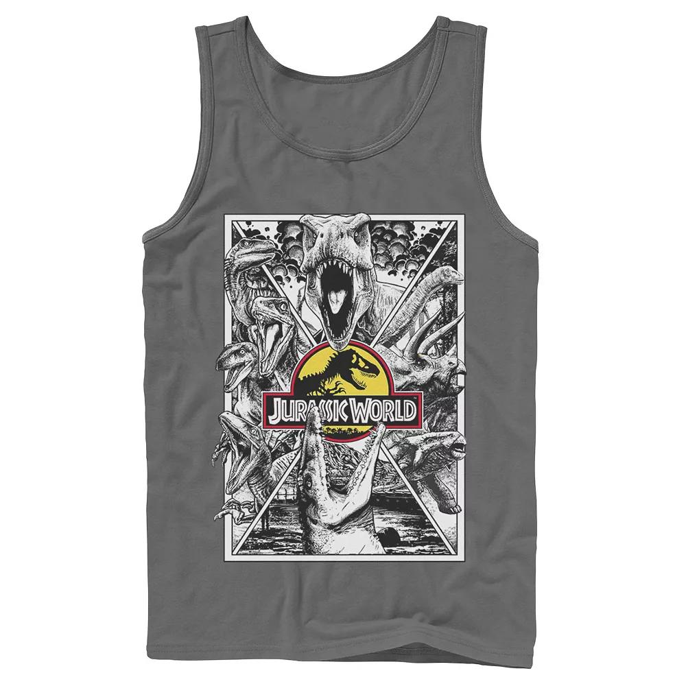Hell love the look of this Mens Jurassic World Black and White Comic Dinos Graphic Tank Top. Crewneck SleevelessFABRIC & CARE Cotton Machine wash Imported Color: Blue. Gender: male. Age Group: adult.