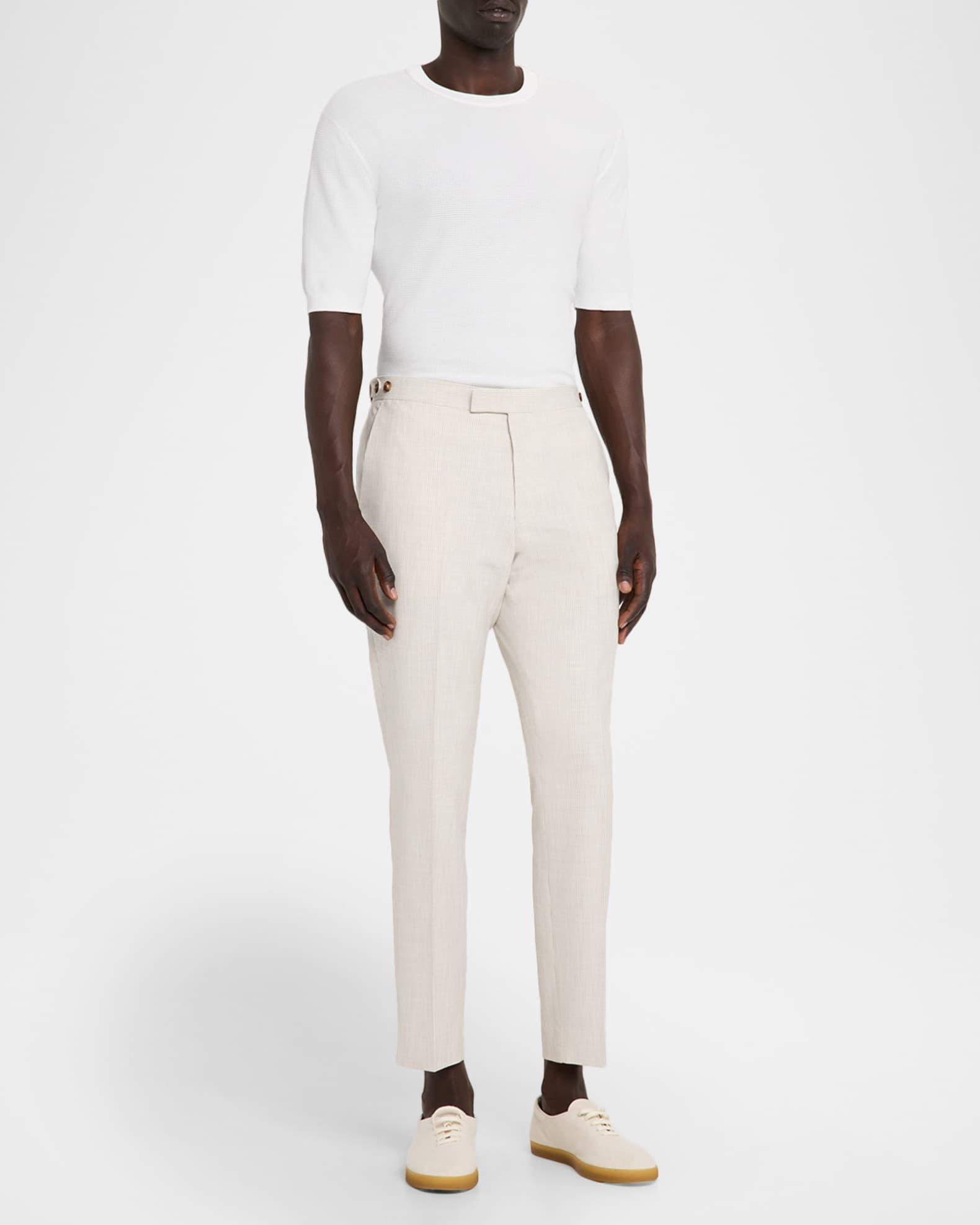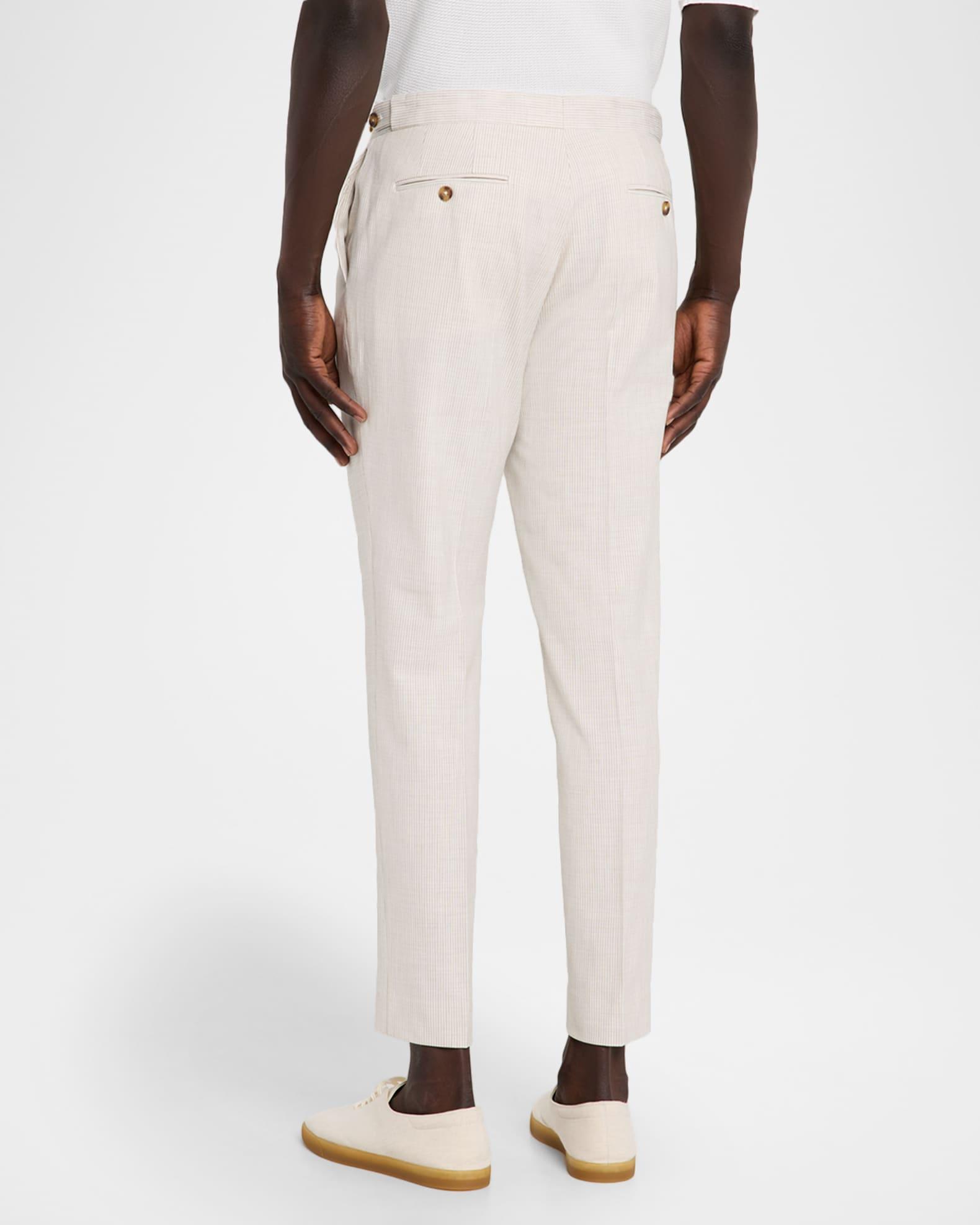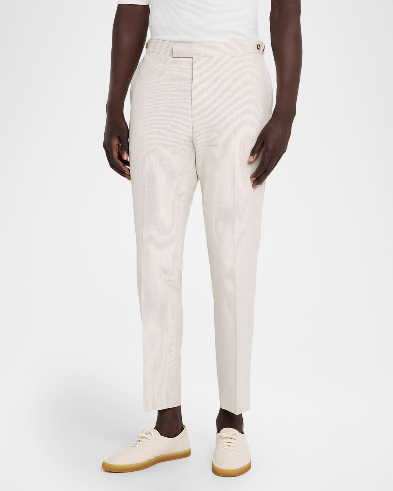 Reiss trousers highlighted with elegant vertical hairline stripes Side adjusters for a customized fit Regular rise Flat front Side slip pockets Buttoned back besom pockets Tapered legs Cropped fit Extended button-zip front Viscose/polyester/elastane Lining: Viscose Dry clean Imported