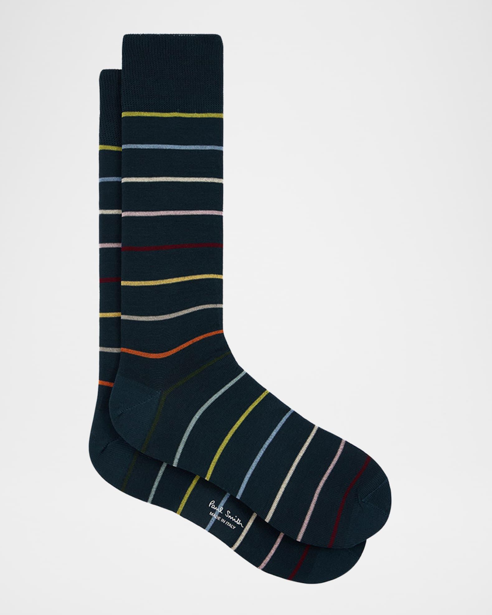 Paul Smith crew socks displaying the signature stripes in a thin stylization Ribbed cuffs to prevent slipping Cotton/nylon/polyamide Machine wash cold Made in Italy