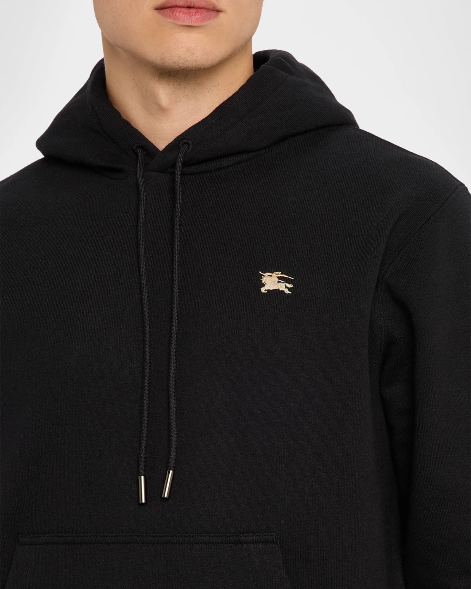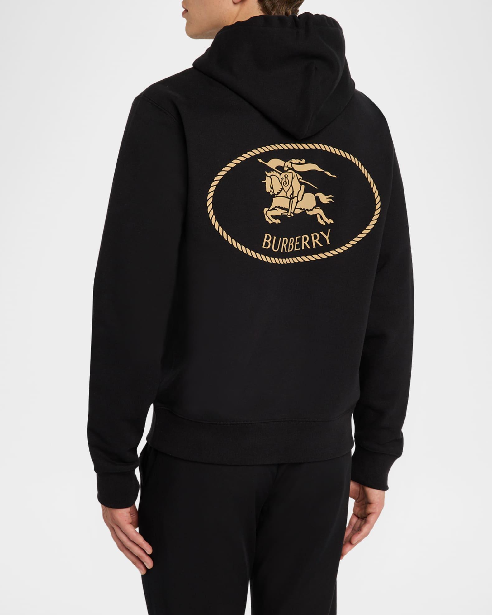 Burberry hoodie in lightweight loop-back cotton, showcasing a raised screen-printed Knight stamp on the back The archival motif was first seen on Burberry bags in the 1980s Hooded drawcord neckline Embroidered Equestrian Knight Design on the chest Kangaroo pocket Long sleeves Ribbed cuffs and hem Pullover style Slim fit Cotton Machine wash Made in Portugal