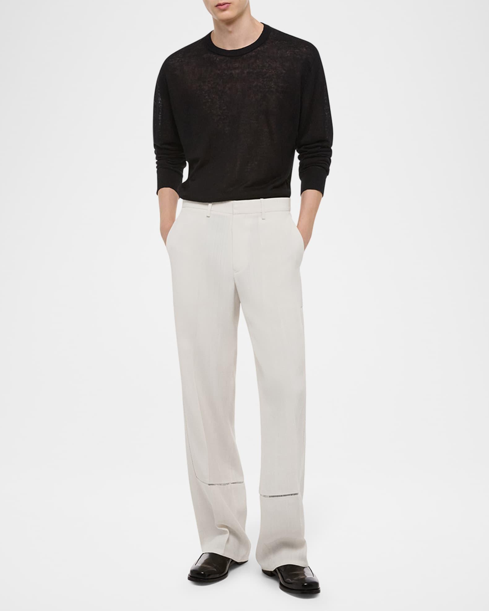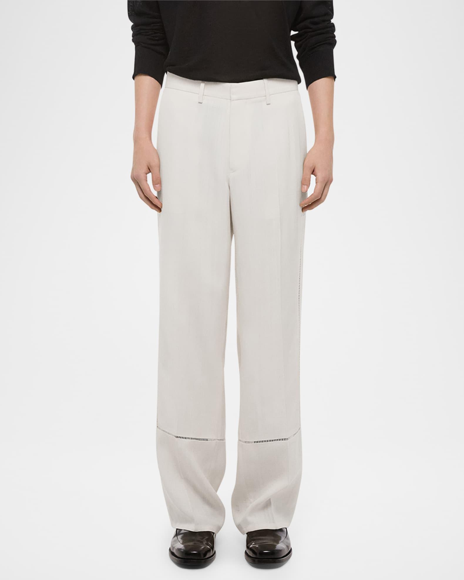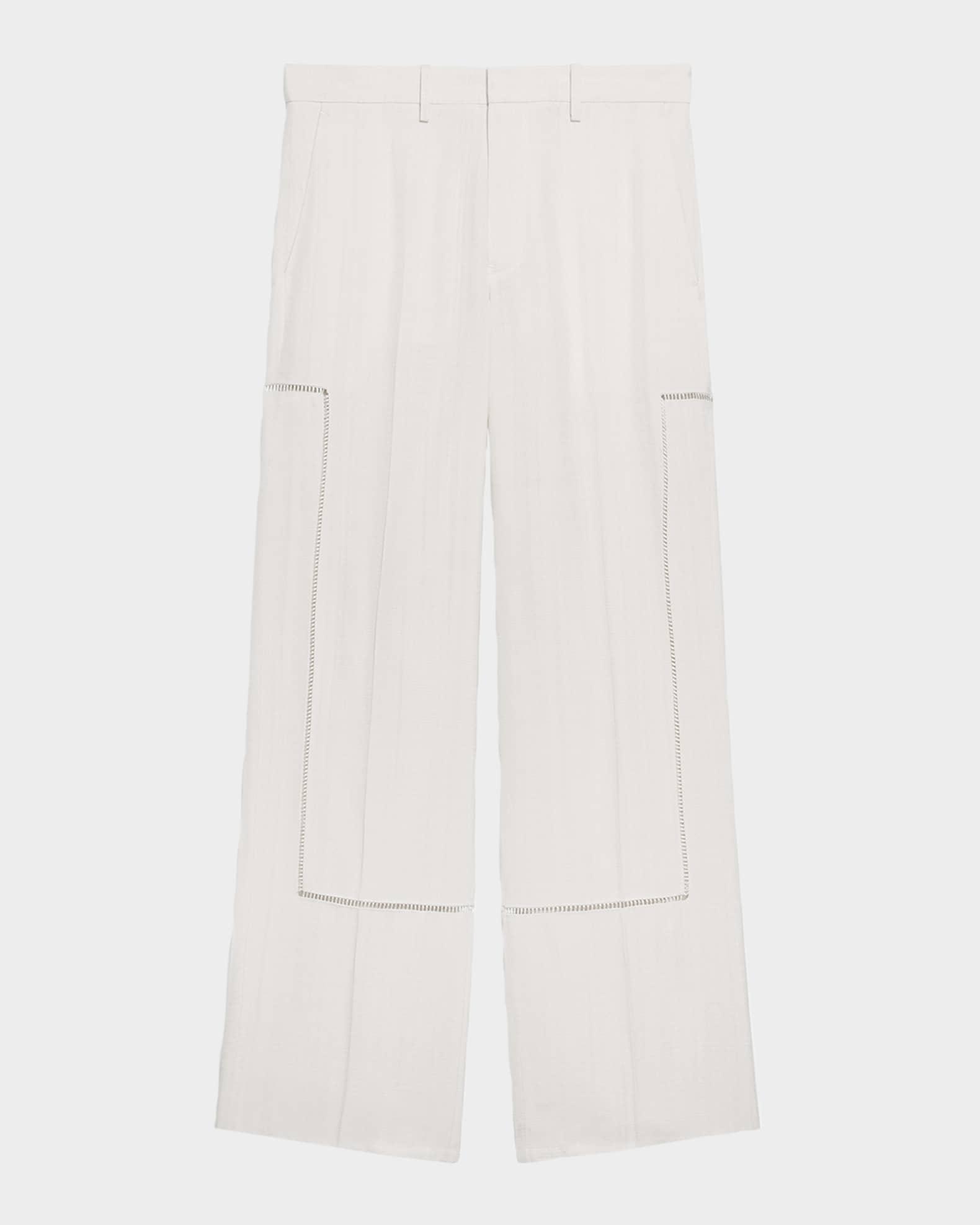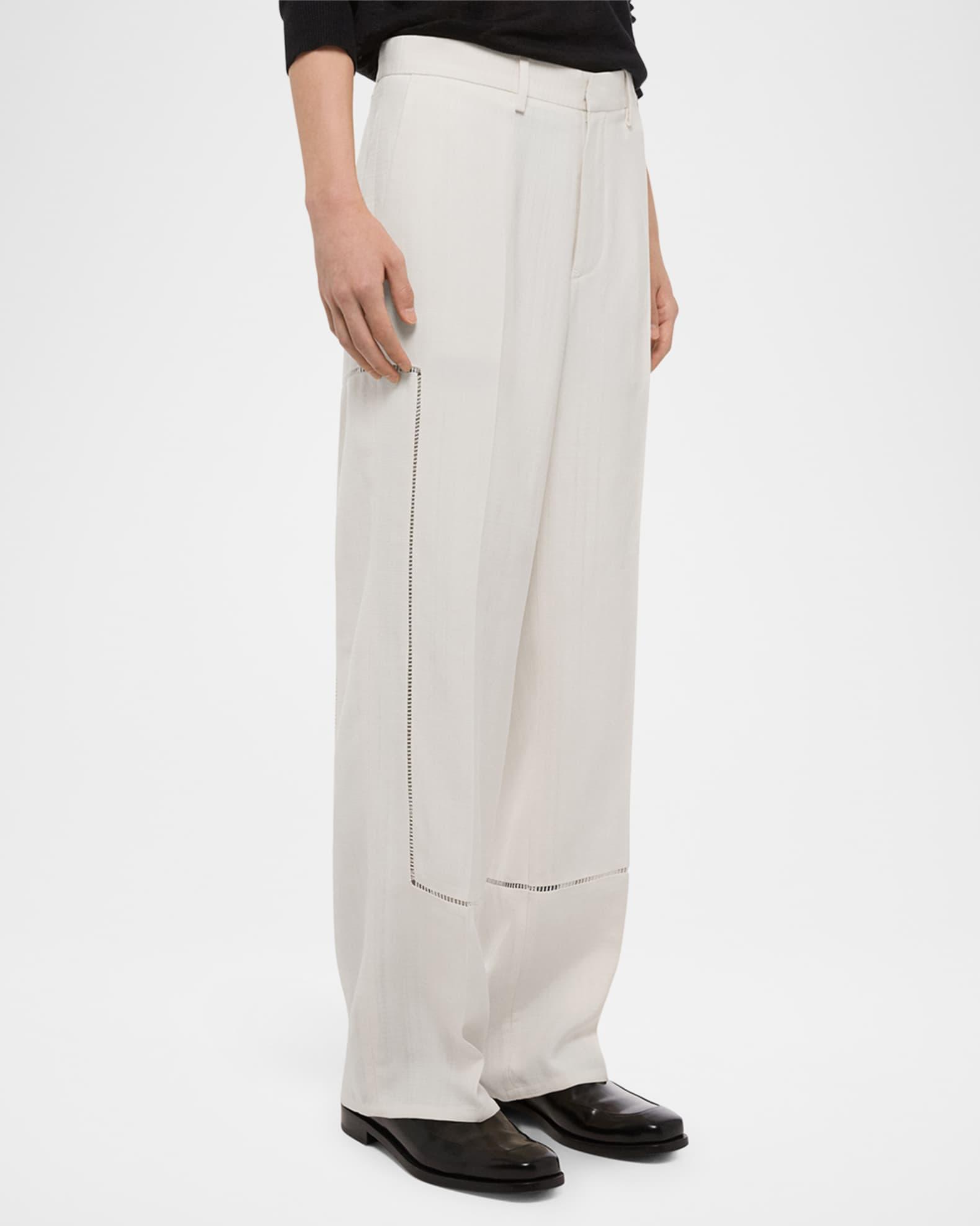 Helmut Lang carpenter pants with open ladder-stitch detailing on legs Approx. measurements: 11.4" rise; 32.5" inseam Regular rise Zip fly with hook-and-bar closure Side slip pockets Back welt pockets with metal logo clip Full length Relaxed fit Viscose Dry clean Imported