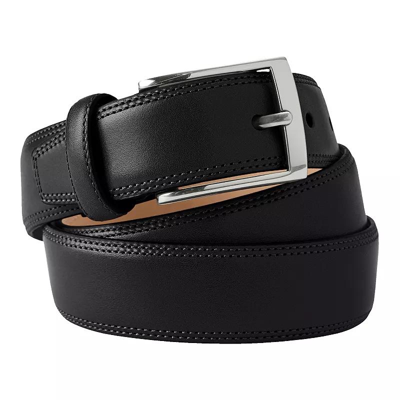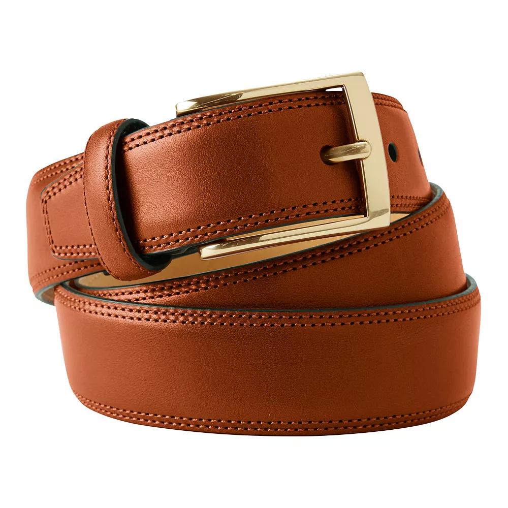 Our Lands End Mens Glove Leather Belt with lead-free harness buckle offers modern sophistication to any dressed-up look. Beautifully crafted with Italian faced leather and heat-creased edges this sturdy leather belt is constructed with 100% genuine full-grain cow leather with a pebble grain. Men Men
