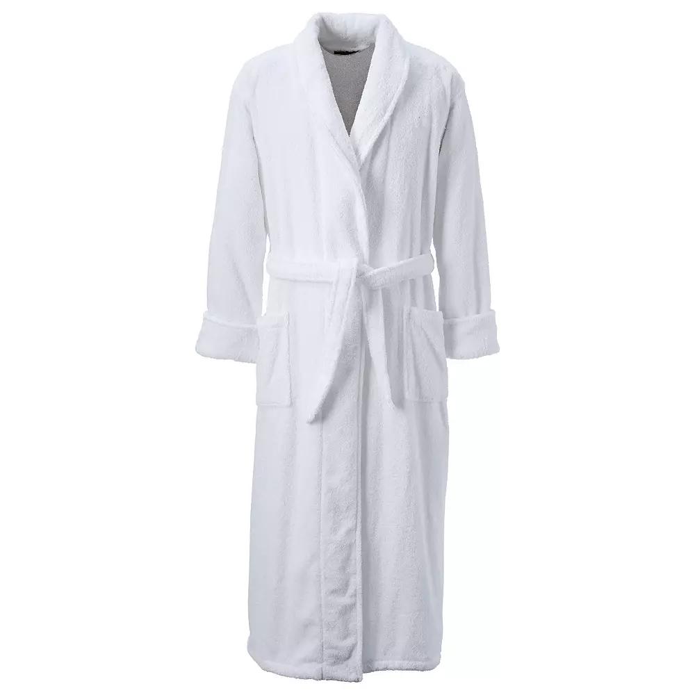 Once you put on this mens luxurous Lands End robe, you wont want to take it off. Once you put on this mens luxurous Lands End robe, you wont want to take it off. Heavyweight warmth rating 2-pocket Shawl collar Luxurious Turkish terry is soft and cozy Long sleevesFIT & SIZING Adjustable tie frontFABRIC & CARE Cotton Machine wash Imported Color: White. Gender: male. Age Group: adult.