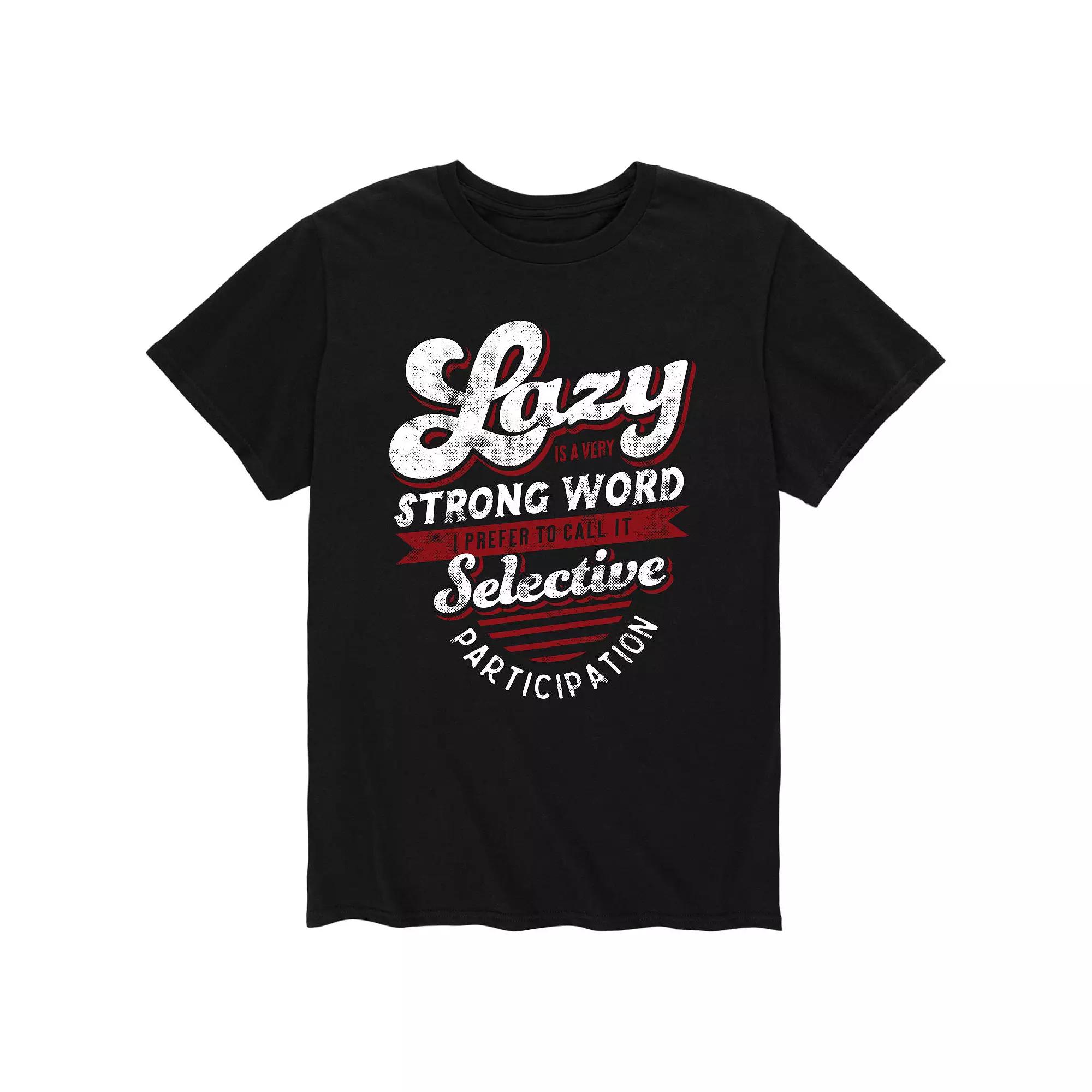 Show off your sense of humor with this mens Lazy tee. Show off your sense of humor with this mens Lazy tee. Crewneck Short sleevesFABRIC & CARE Cotton, polyester Machine wash Imported Color: Black. Gender: male. Age Group: adult. Pattern: Graphic. Material: Cotton Blend.