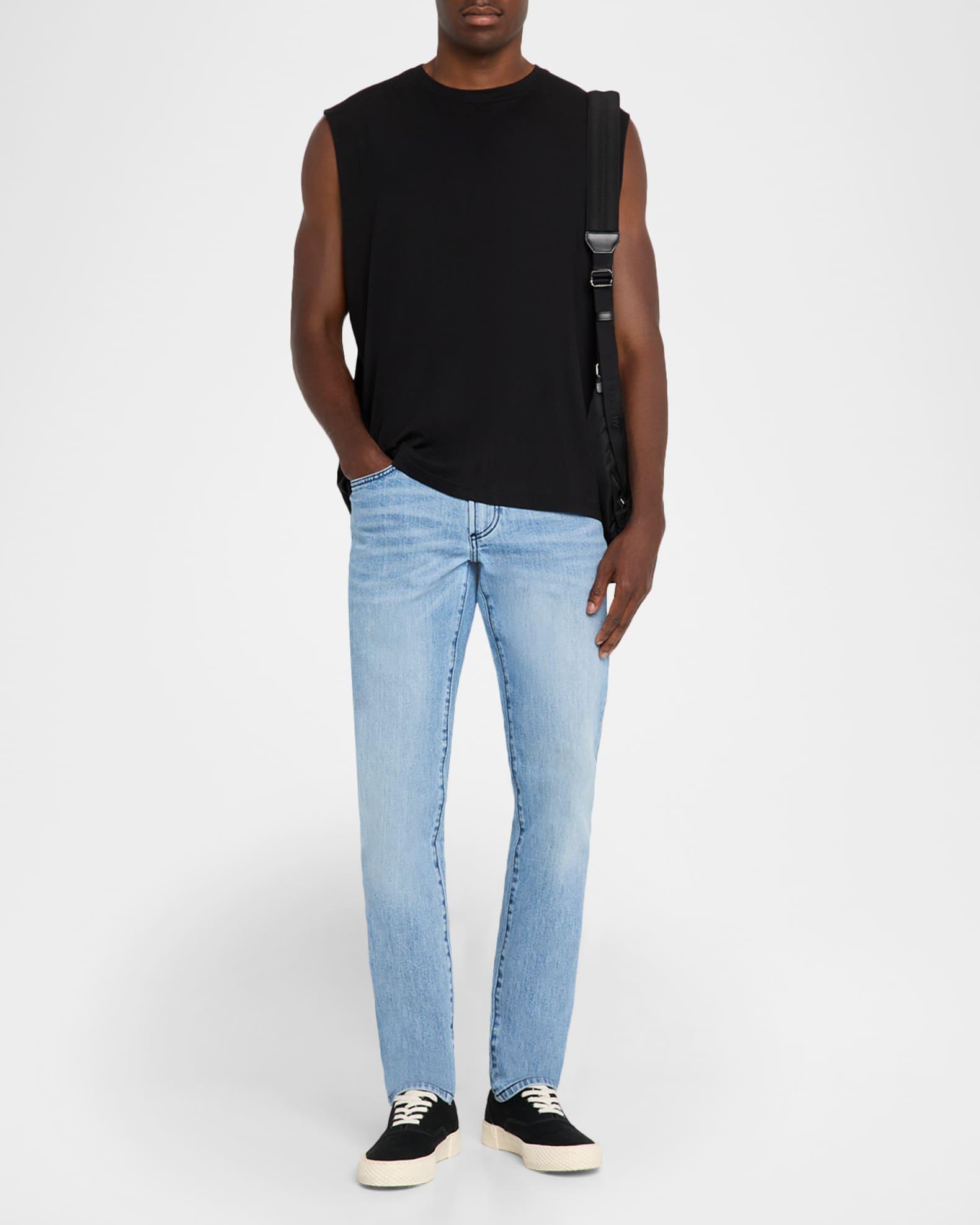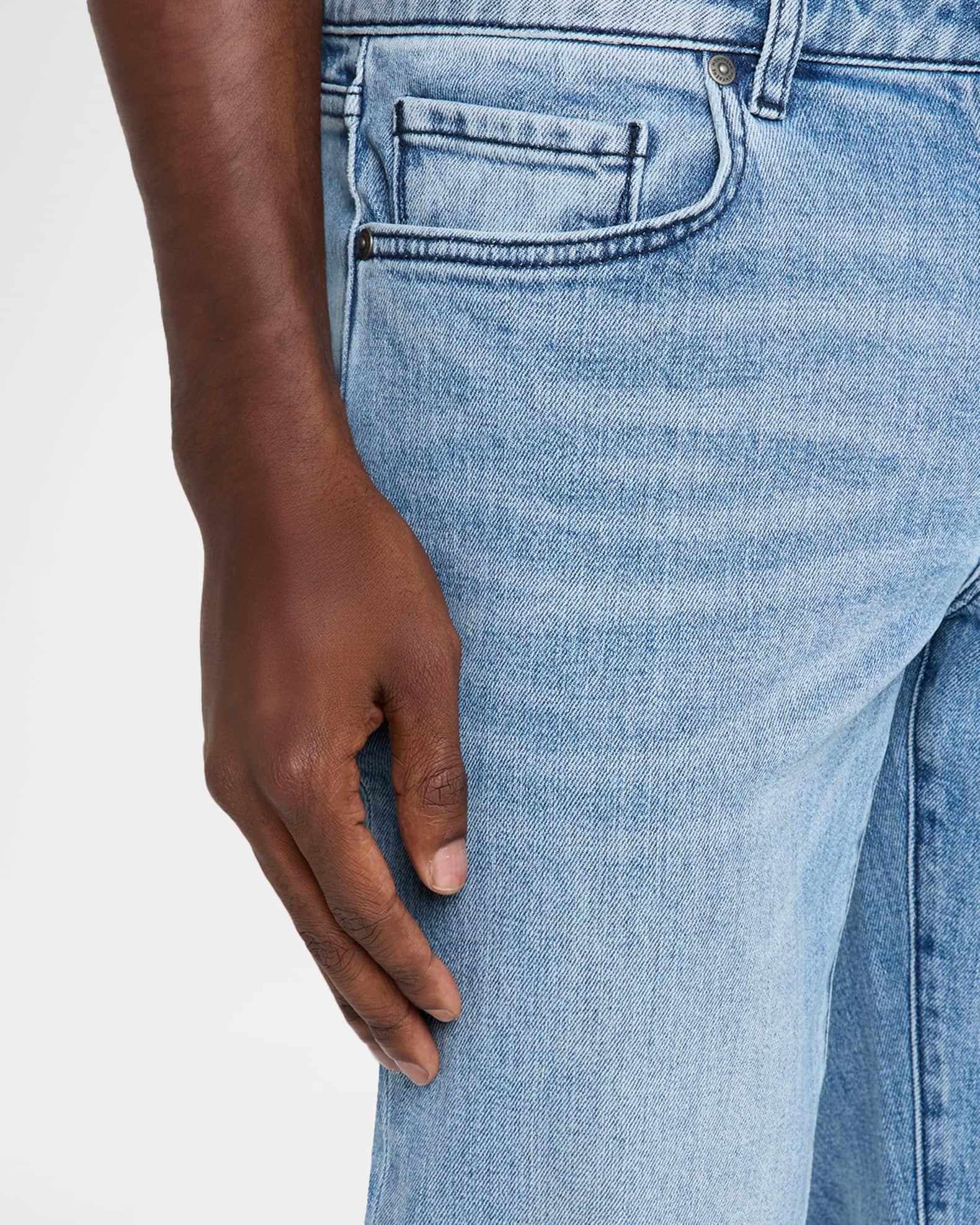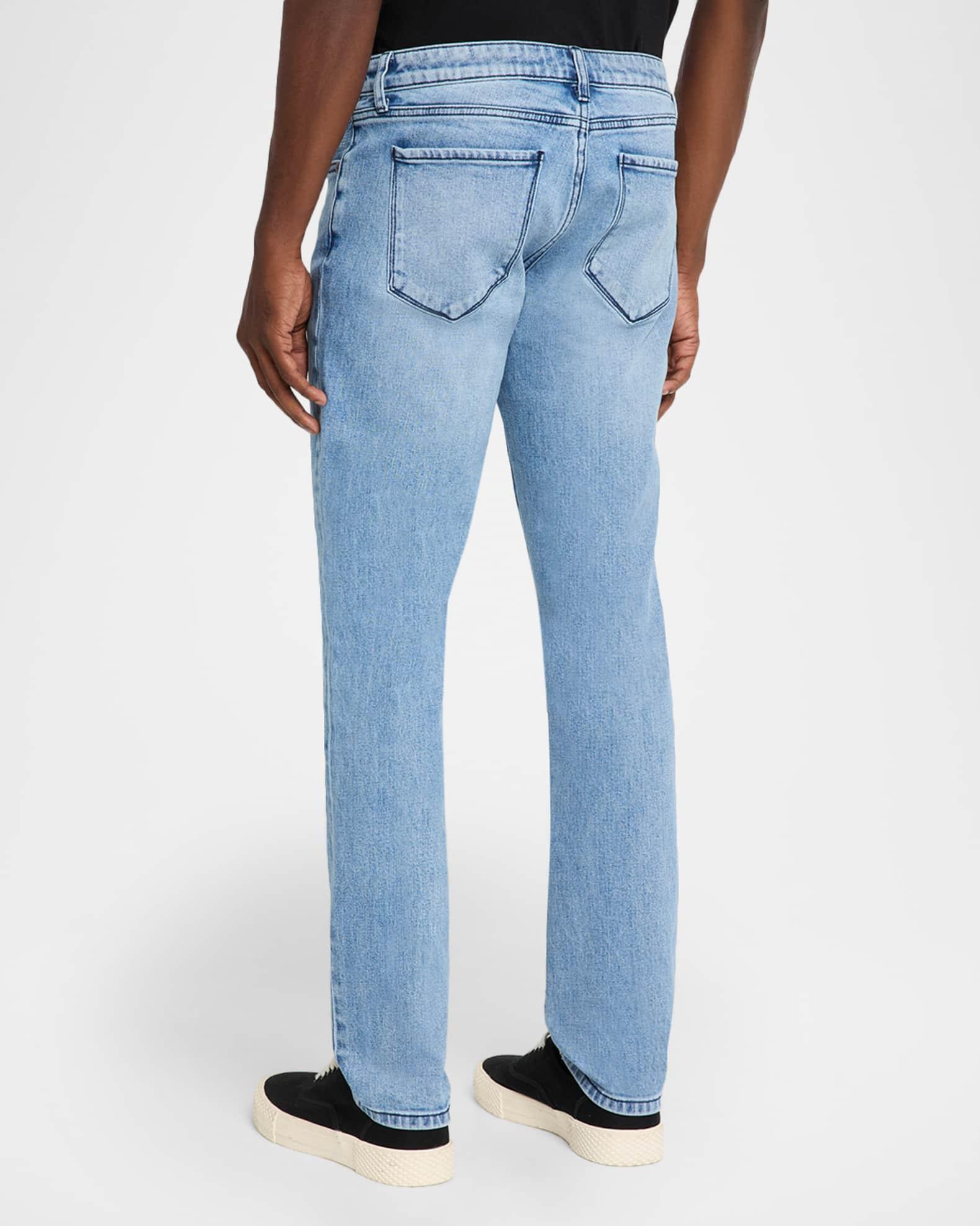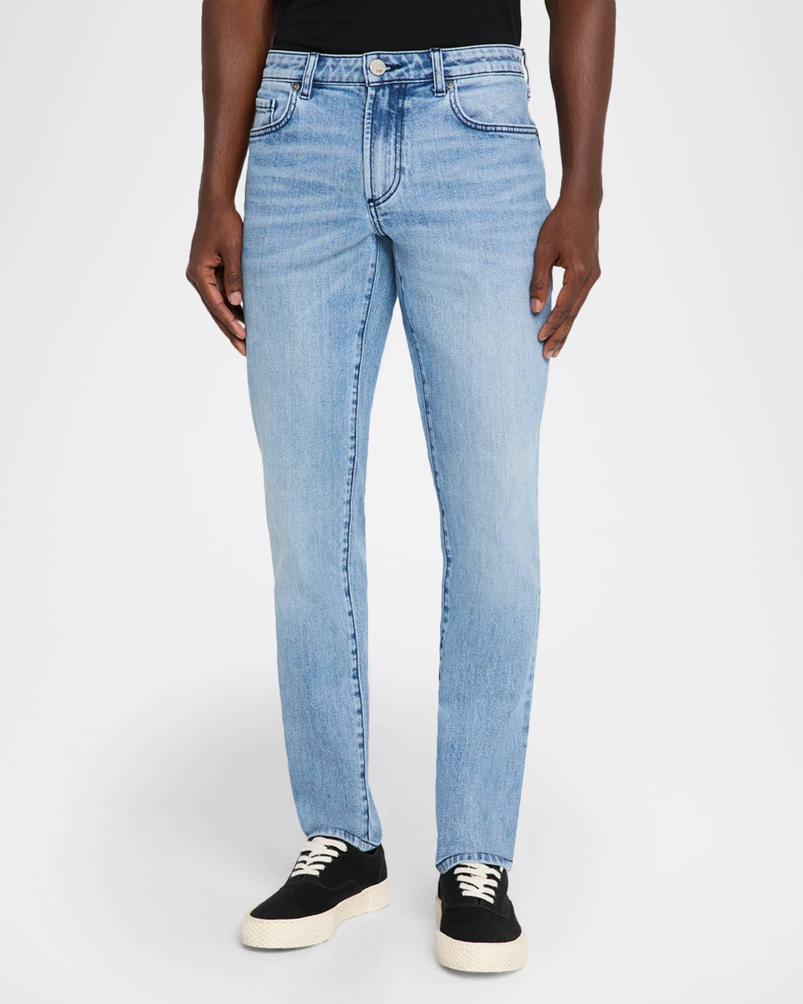 Whiskering and a light wash add to the premium stretch denim of monfrere "Lenny Wilshire" jeans. Low rise sits at hip Button/zip fly; belt loops Five-pocket style Slim fit through tapered legs Cotton/lyocell/elastane Machine wash cold, machine wash line dry Imported