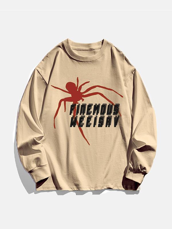 Men's Letter Spider Print Long Sleeve Tee