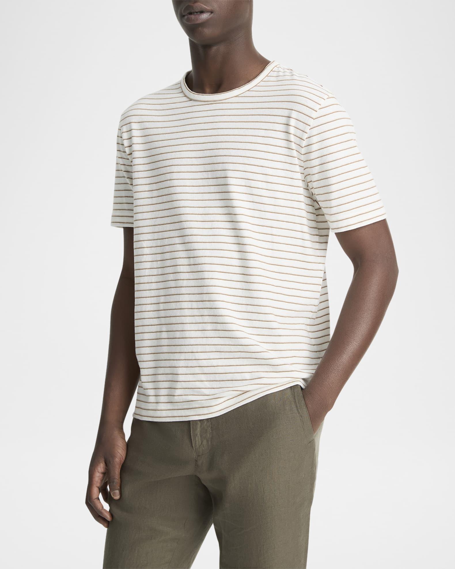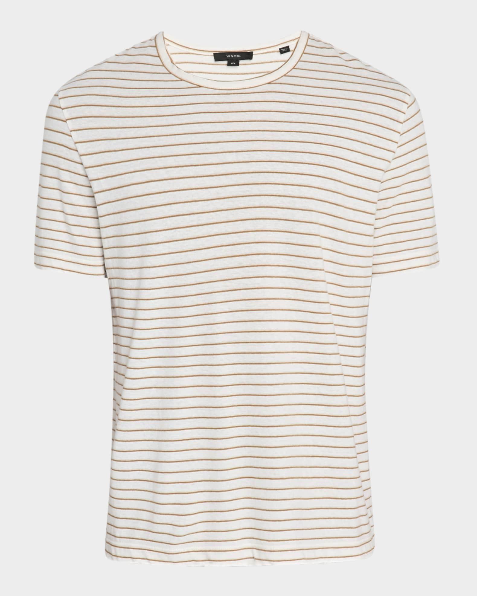 Men's Linen and Cotton Pinstripe Crewneck T-Shirt