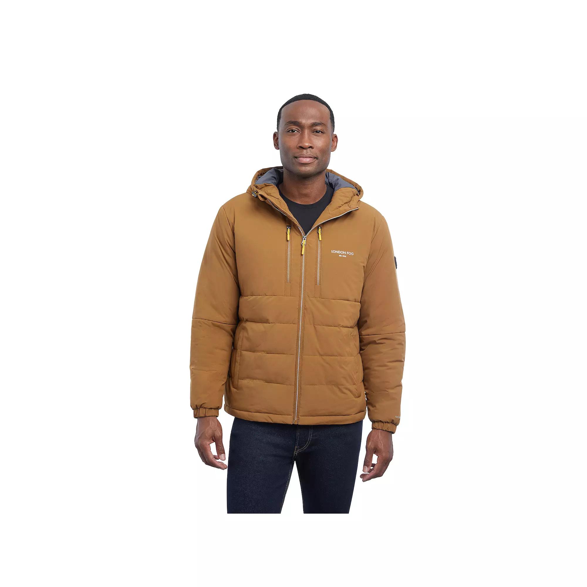Cold temps wont get you down with this mens London Fog Flex Stretch hooded puffer jacket. Cold temps wont get you down with this mens London Fog Flex Stretch hooded puffer jacket. Zip front closure Heavyweight Water repellent finish Flex stretch fabric moves with you Puffer design Drawstring hood Functional drawstring hem to keep the cold out Long sleeves Ribbed cuffs 3-pocketFIT & SIZING Approximate 27.5-in. length Classic fitFABRIC & CARE Polyester Machine wash Imported Color: Brown. Gender: male. Age Group: adult.