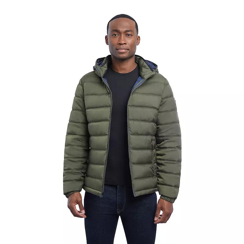 Take on the elements in style and warmth with this handsome mens hooded puffer coat from London Fog. Midweight insulation Water-repellent exterior Attached hood Zip front Multiple pockets Long sleevesFIT & SIZING Regular fit 28-inch approximate length Elastic cuffsFABRIC & CARE 100% polyester Machine wash Imported Size: XXL. Color: Green. Gender: male. Age Group: adult.