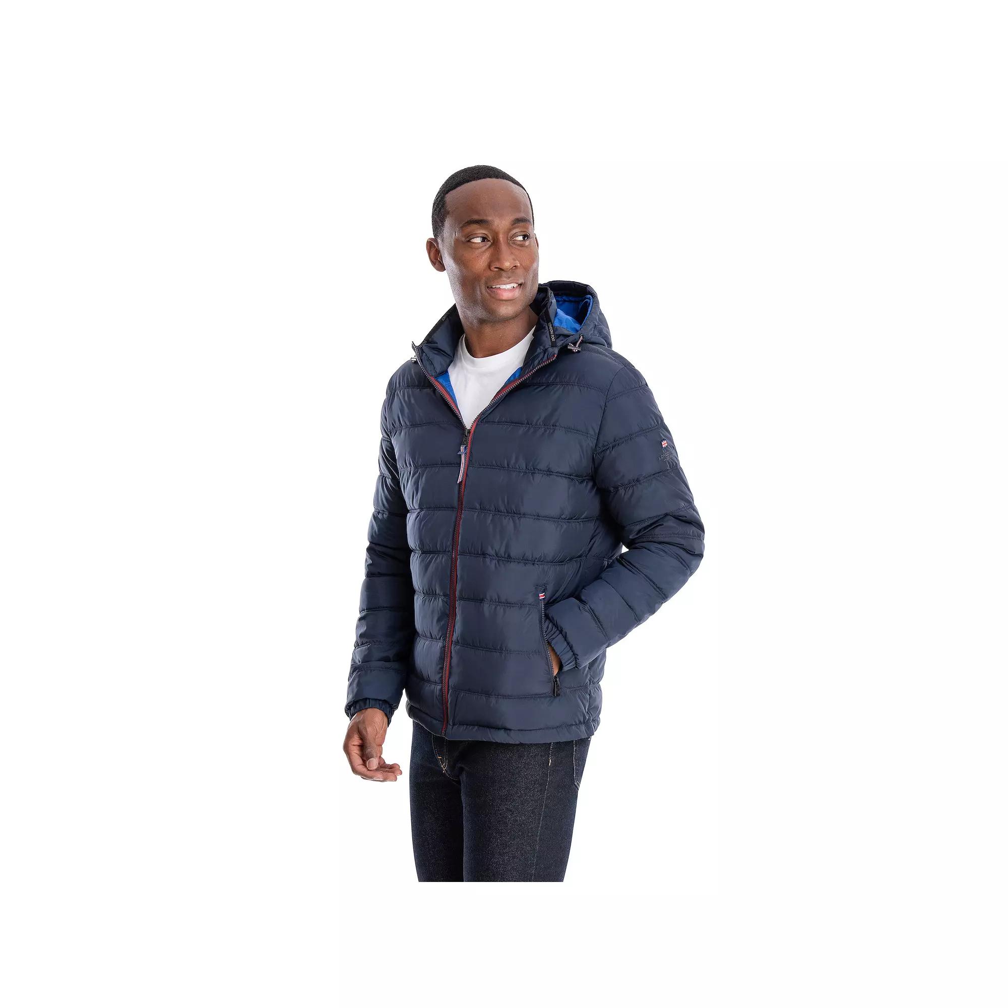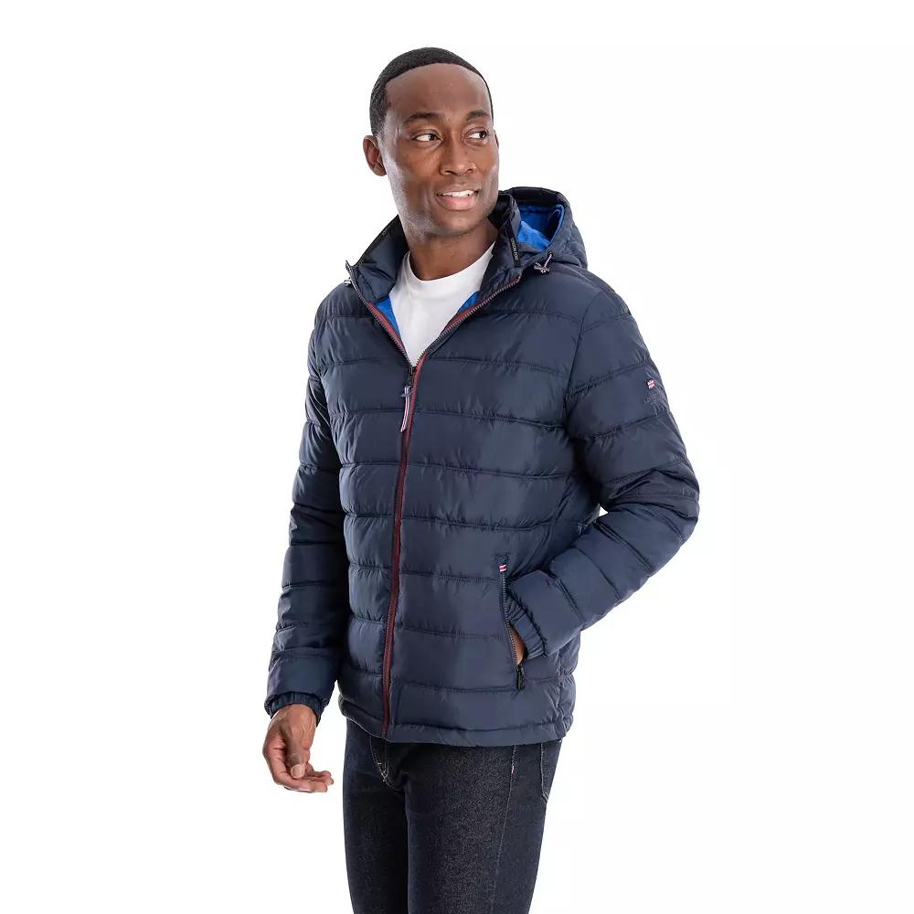 Take on the elements in style and warmth with this handsome men's hooded puffer coat from London Fog. Midweight insulation Water-repellent exterior Attached hood Zip front Multiple pockets Long sleevesFIT & SIZING Regular fit 28-inch approximate length Elastic cuffsFABRIC & CARE 100% polyester Machine wash Imported Color: Blue. Gender: male. Age Group: adult.