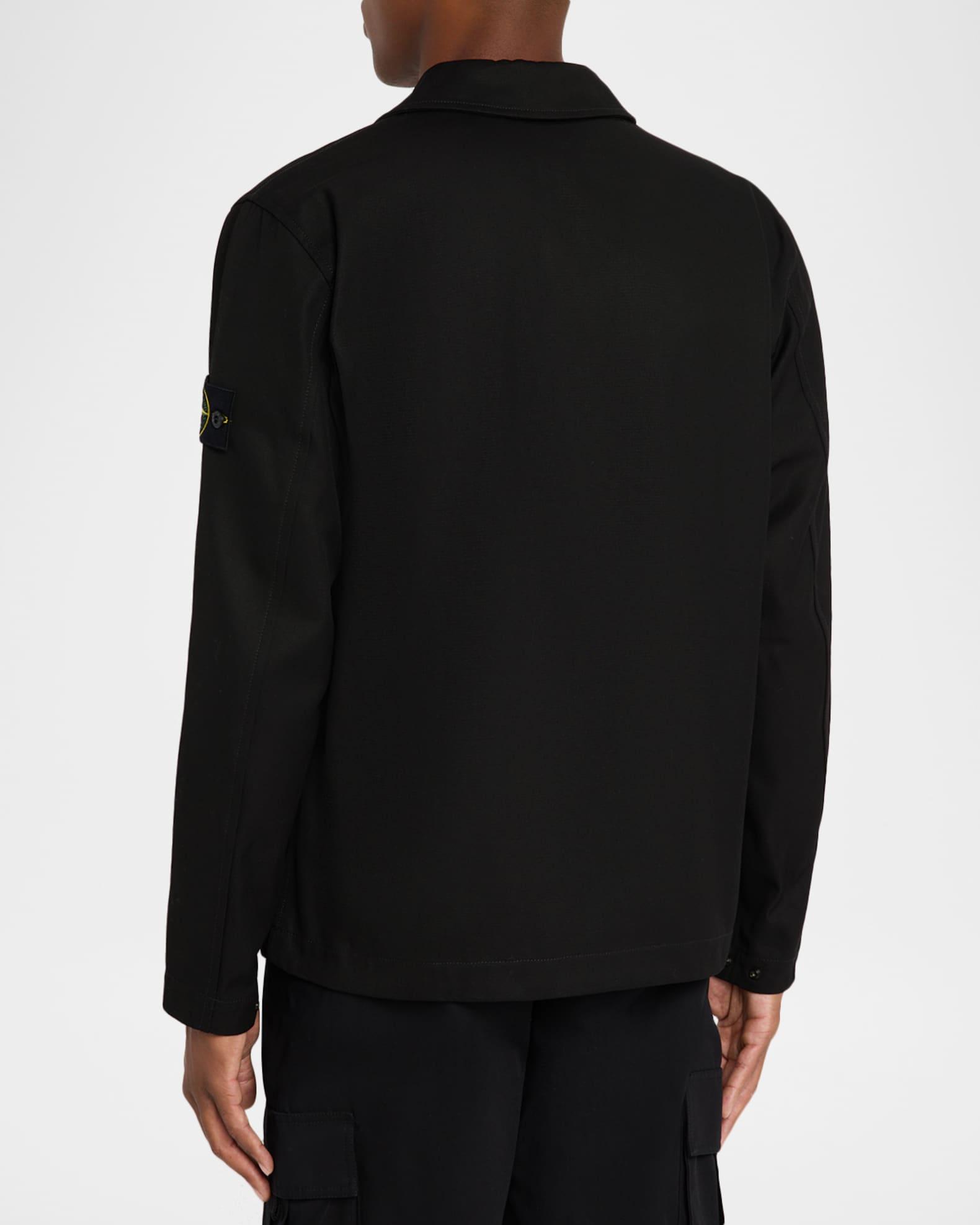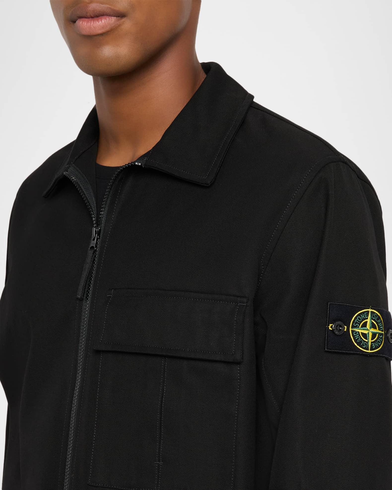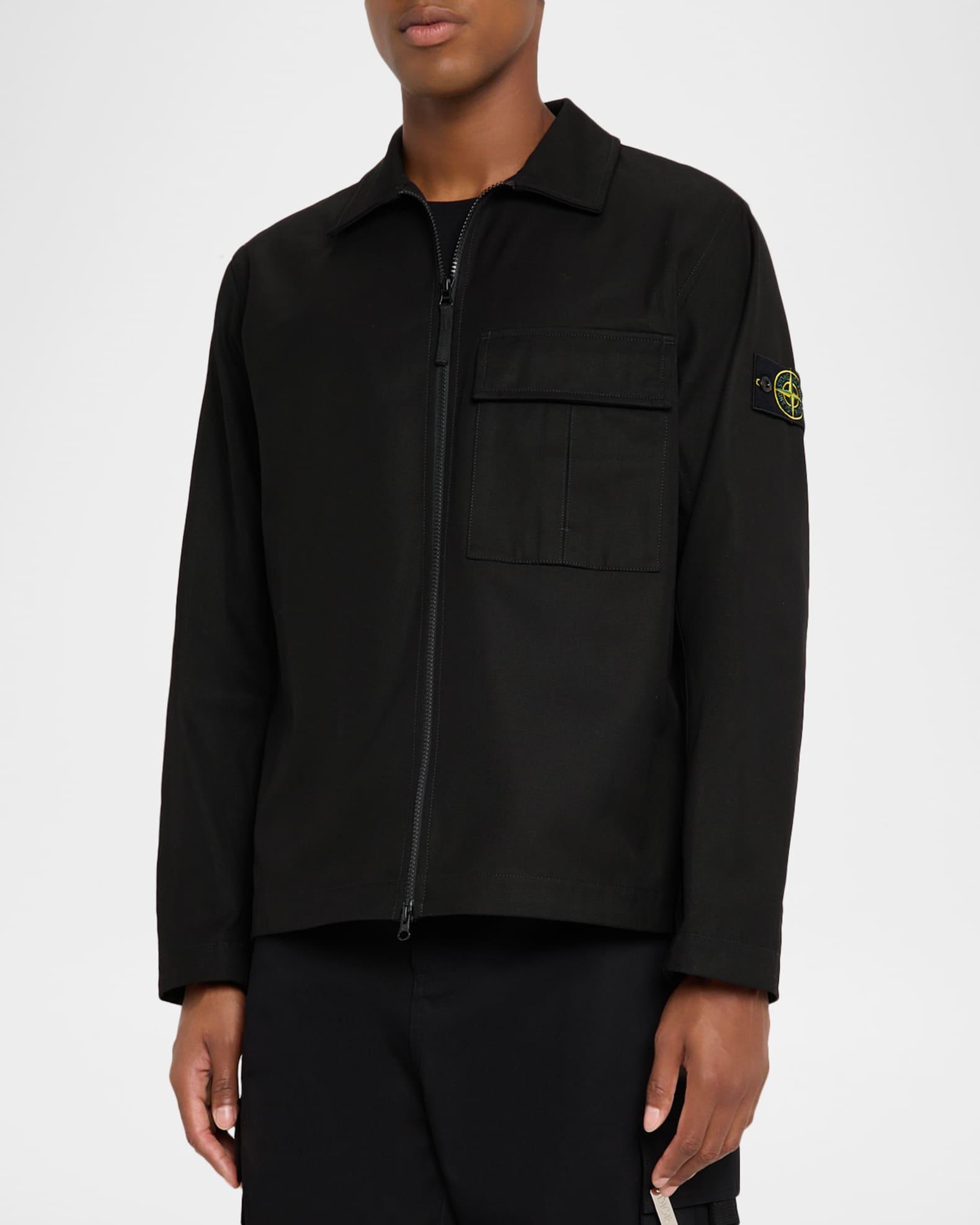Designed from 100% cotton, Stone Island seals this long-sleeve overshirt with an exposed zipper and a large single pocket on the chest. Spread collar Two-way zipper Long sleeves Logo badge on the left arm Flap pocket with hidden snap Adjustable snap cuffs Cotton Machine wash cold Imported