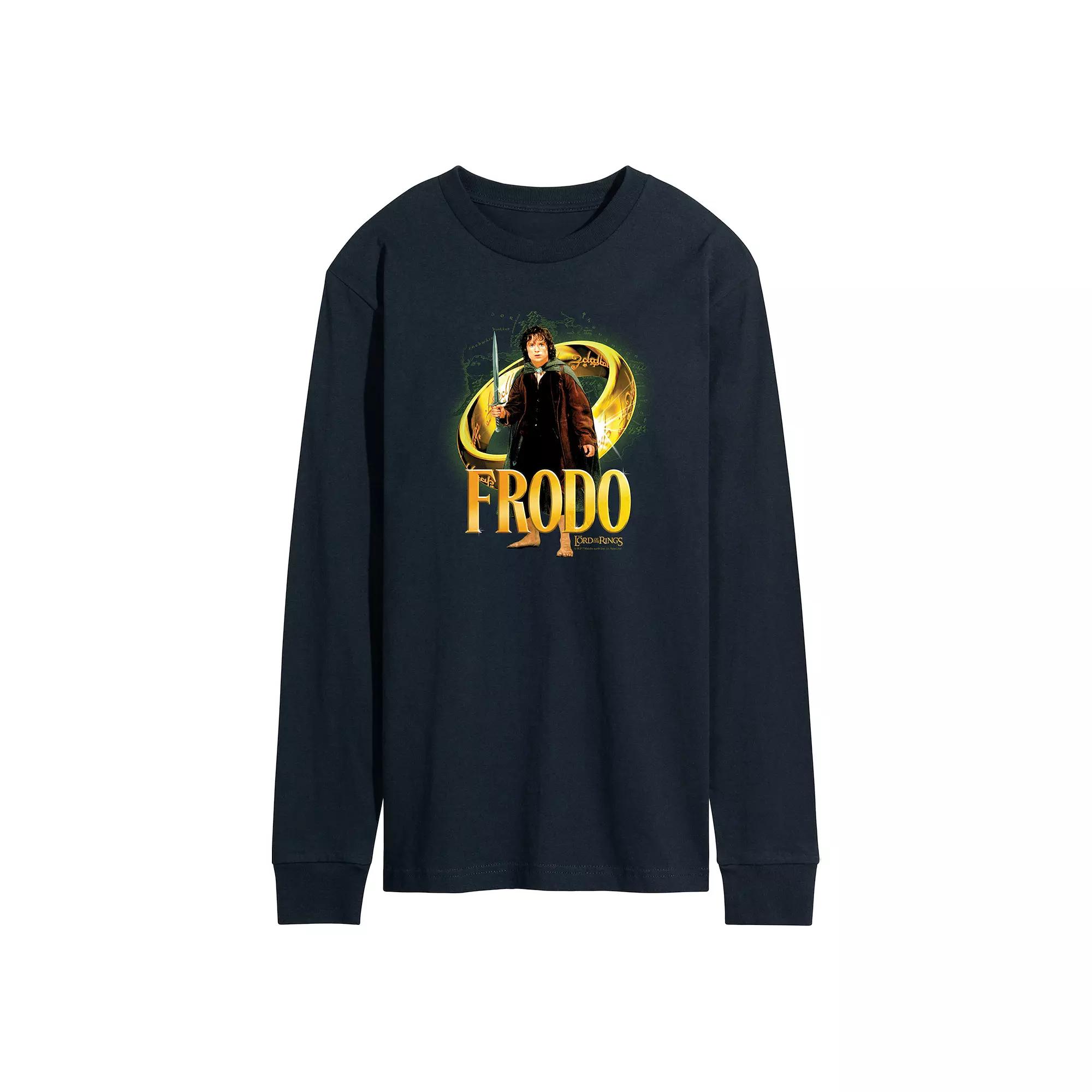 Youll love showing off your unique sense of style in this Mens Lord Of The Rings Frodo Baggins Ring Long Sleeve Graphic Tee. FEATURES Crewneck Long sleeveFABRIC & CARE Solid Color: Cotton ; Heather Colors: Cotton/Polyester Machine wash Imported Size: XL. Color: Navy. Gender: male. Age Group: adult.