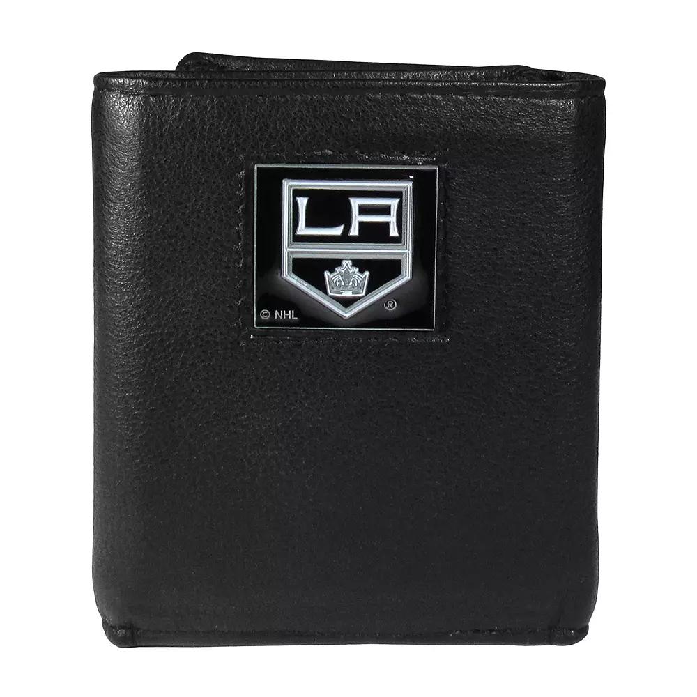 This men's Los Angeles Kings trifold wallet is the perfect investment for your fan gear. 6 card slots 1 divided billfold pocket Clear ID window Removable picture insert Boxed for gift giving 6" x 6" x 1.25" Genuine fine grain leather Spot clean Imported Shop our full assortment of Los Angeles Kings items here. When you’re a fan, you’re family! Size: One Size. Color: Black. Gender: male. Age Group: adult.