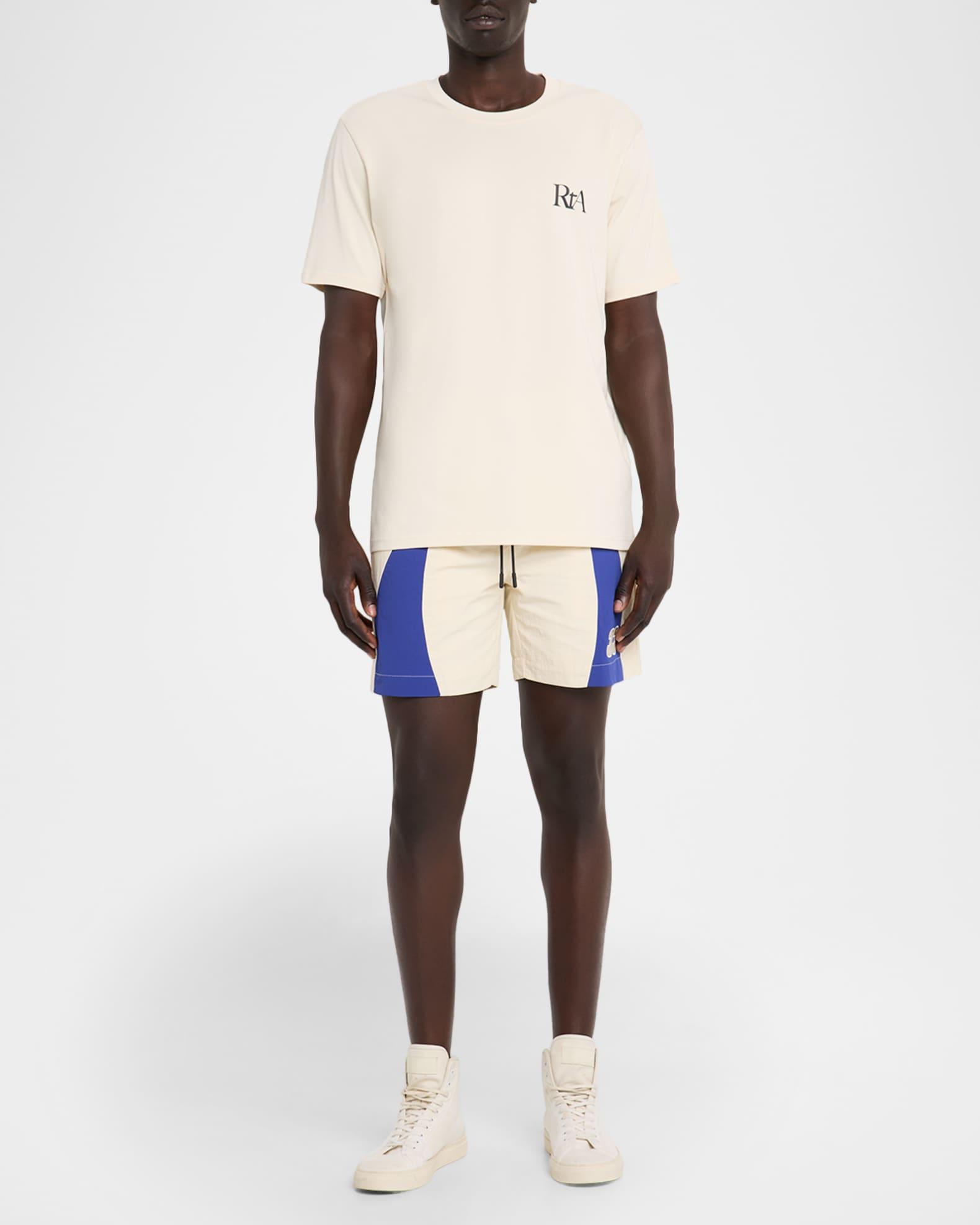 RTA "Louis" shorts accented with graphic stripes and embroidered branding throughout Regular rise Side slip pockets Vented sides Classic fit Elasticized waistband Adjustable drawstring Pull-on style Nylon Lining: Polyester/viscose Hand wash Imported