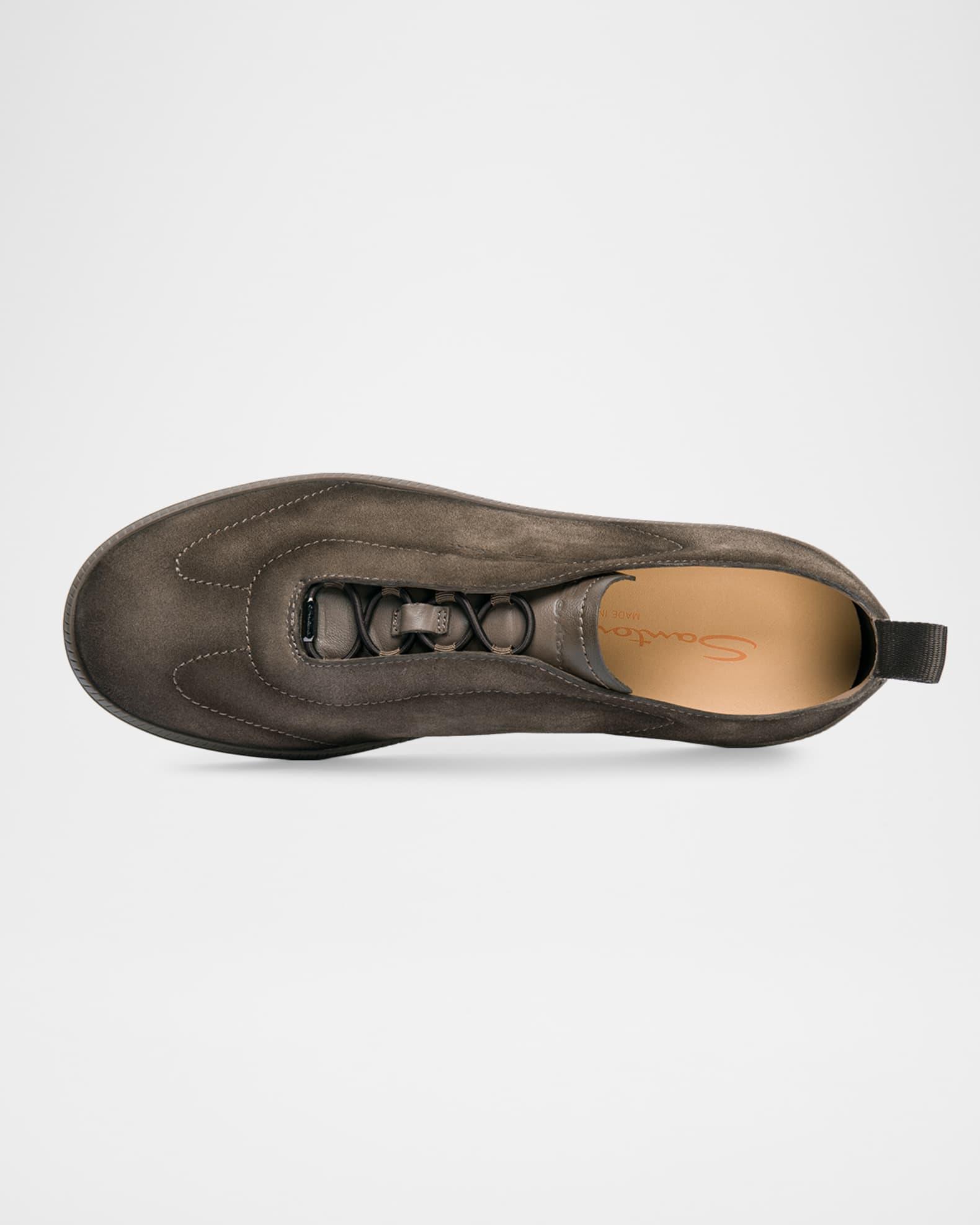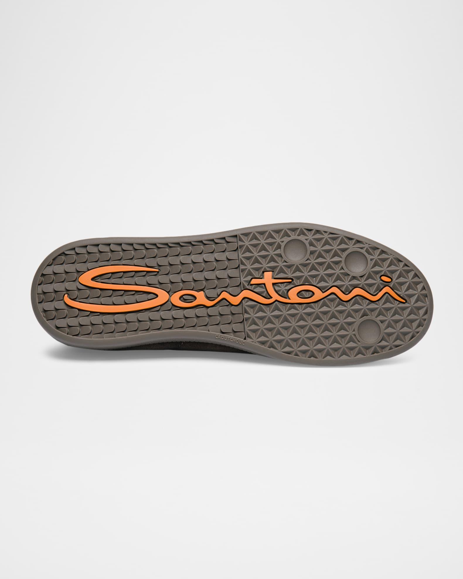 Santoni "Lume" sneakers in soft suede, highlighted with a unique degradé finish Flat heel Round T-toe Lace-up vamp Elasticated shoelaces for easy on and off Leather tongue with embossed logo Leather lining Backstay pull tab Branded rubber outsole Made in Italy
