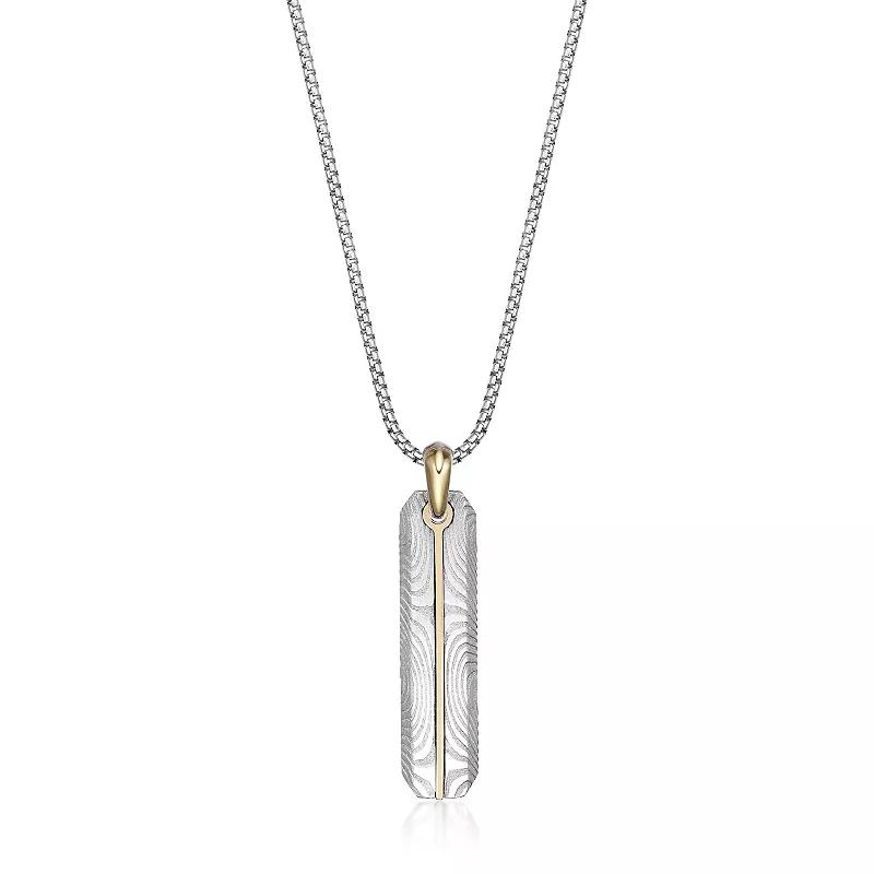 Accent his look with this men's LYNX black ion-plated Damascus stainless steel pendant necklace. Click on this JEWELRY & WATCHES GUIDE to learn about fit, styles, materials and more! Accent his look with this men's LYNX black ion-plated Damascus stainless steel pendant necklace. Click on this JEWELRY & WATCHES GUIDE to learn about fit, styles, materials and more! FEATURES Pendant size: 1.61"L x 0.63"W Chain length: 24 in. Chain type: box Clasp: lobster-claw Nickel safe Metal: stainless steel Plating: ion plated Finish: polished Packaging: boxed Size: 24". Color: Gold Tone. Gender: male. Age Group: adult.
