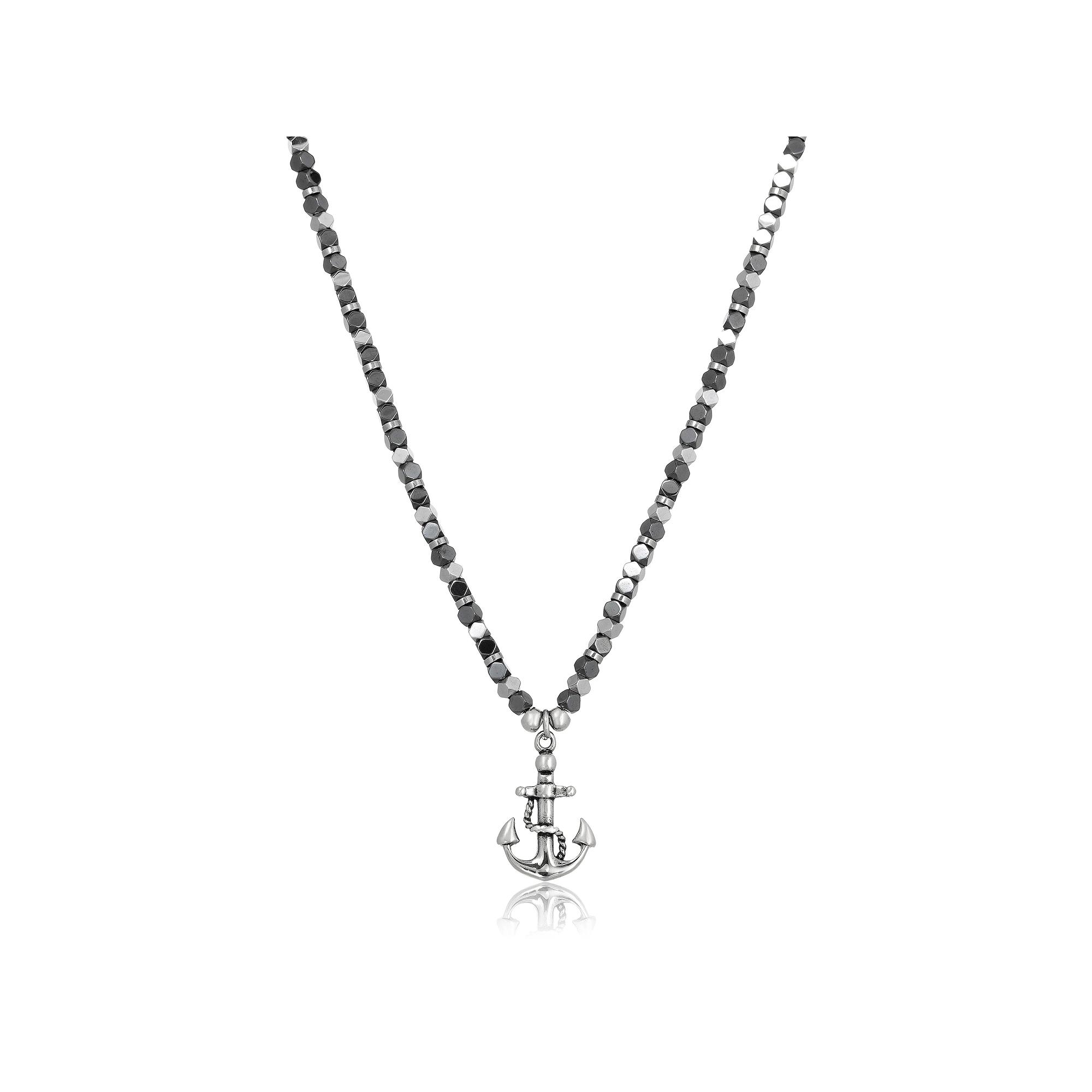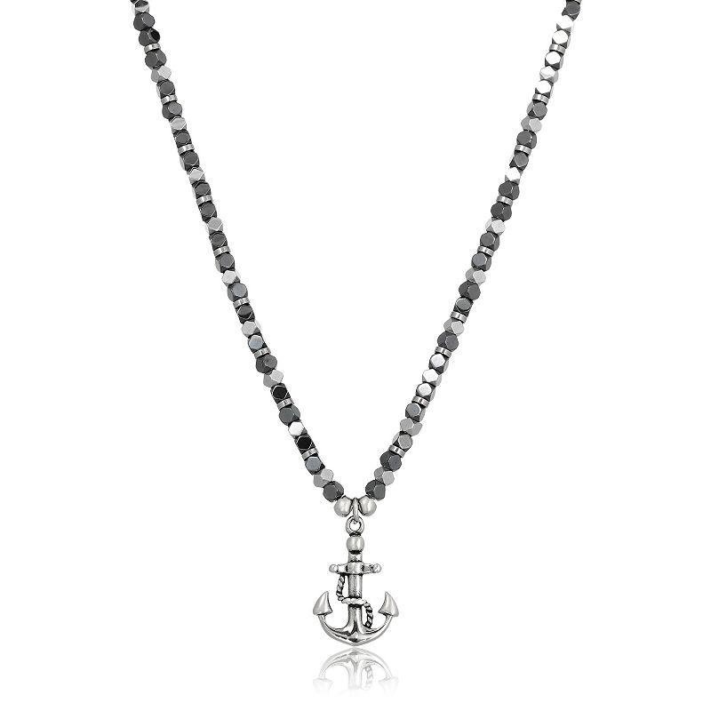 Men's LYNX Black Ion-Plated Stainless Steel & Hematite Bead Chain Anchor Pendant Necklace,  Product Image