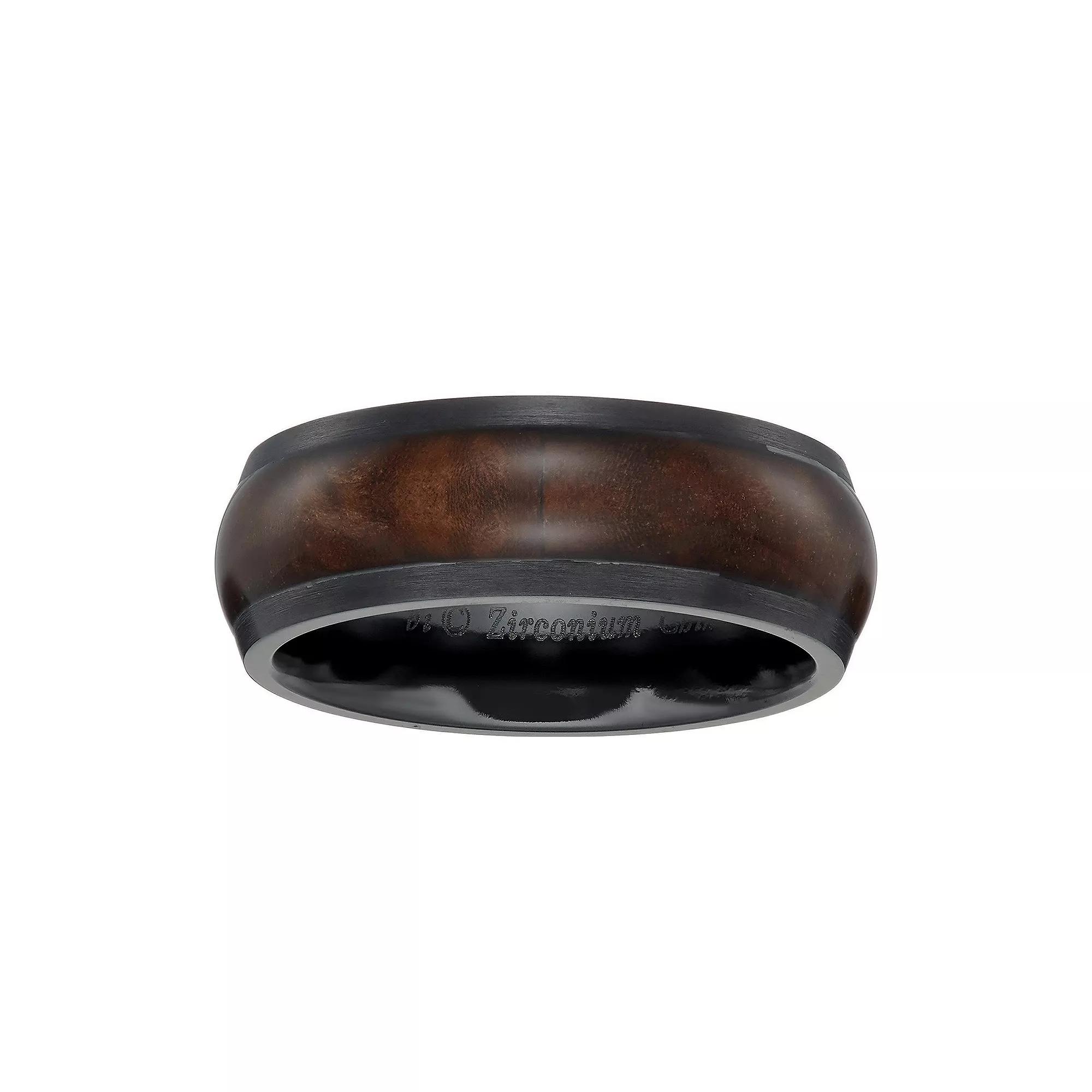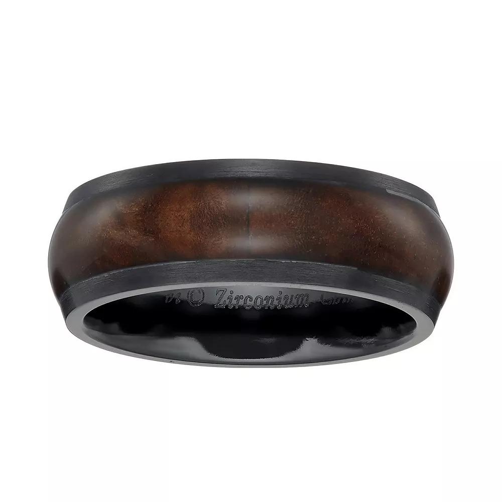 Featuring an elegant wood inlay, this black zirconium ring is the perfect way to stand out in a crowd. Featuring an elegant wood inlay, this black zirconium ring is the perfect way to stand out in a crowd. Width: 8 mm Metal: black zirconium Finish: polished Additional details: wood inlay Packaging: boxed Please note, due to the high value of this item, a signature may be required upon delivery. Gender: male. Age Group: adult. Material: Stainless Steel.