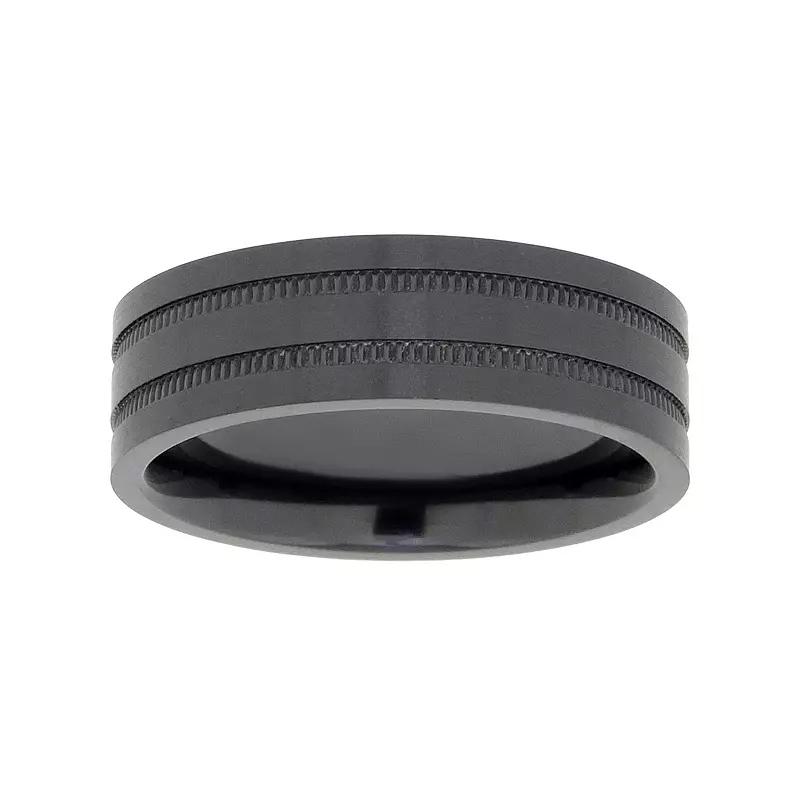 Textured grooves give this LYNX black zirconium ring a contemporary look you're sure to love. Textured grooves give this LYNX black zirconium ring a contemporary look you're sure to love. Width: 7 mm Material: black zirconium Finish: polished Packaging: boxed Please note, due to the high value of this item, a signature may be required upon delivery. Size: 9. Gender: male. Age Group: adult.