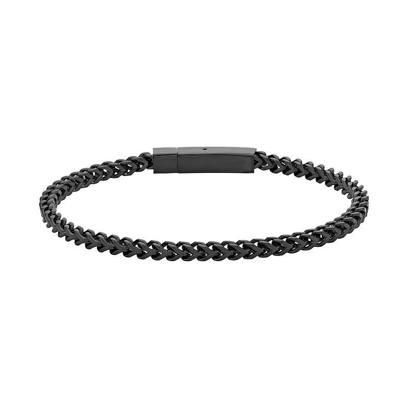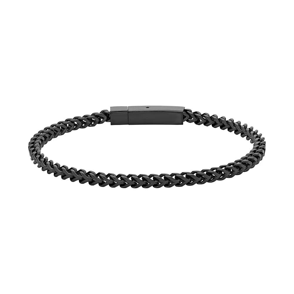 Look stylish every day when you wear this mens LYNX stainless steel chain bracelet. Click on this JEWELRY & WATCHES GUIDE to learn about fit, styles, materials and more! Look stylish every day when you wear this mens LYNX stainless steel chain bracelet. Click on this JEWELRY & WATCHES GUIDE to learn about fit, styles, materials and more! FEATURES Chain type: foxtail Length: 9 in. Chain width: 4 mm Clasp: safety Metal: stainless steel Plating: ion plated Finish: polished Packaging: pouch Size: 9. Color: Black. Gender: male. Age Group: adult.