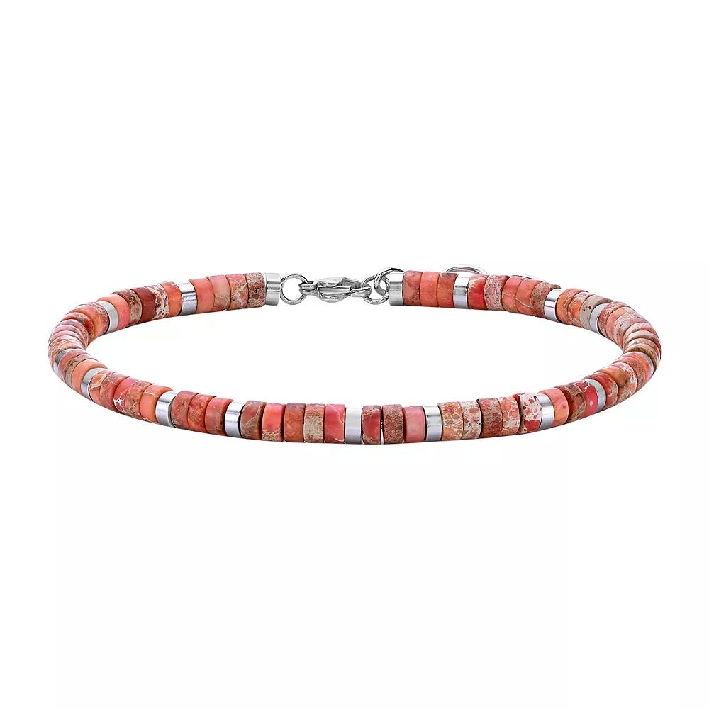 Hell love the eye-catching look of this Mens LYNX Stainless Steel Imperial Turquiose Bracelet. Click on this JEWELRY & WATCHES GUIDE to learn about fit, styles, materials and more! FEATURES Length: 8.5 in. Clasp: lobster-claw Nickel free Metal: stainless steel Finish: polished Packaging: boxed ImportedSTONE DETAILS Beads: Imperial turquoise Shape: round Size: 8.5. Color: Multicolor. Gender: male. Age Group: adult.