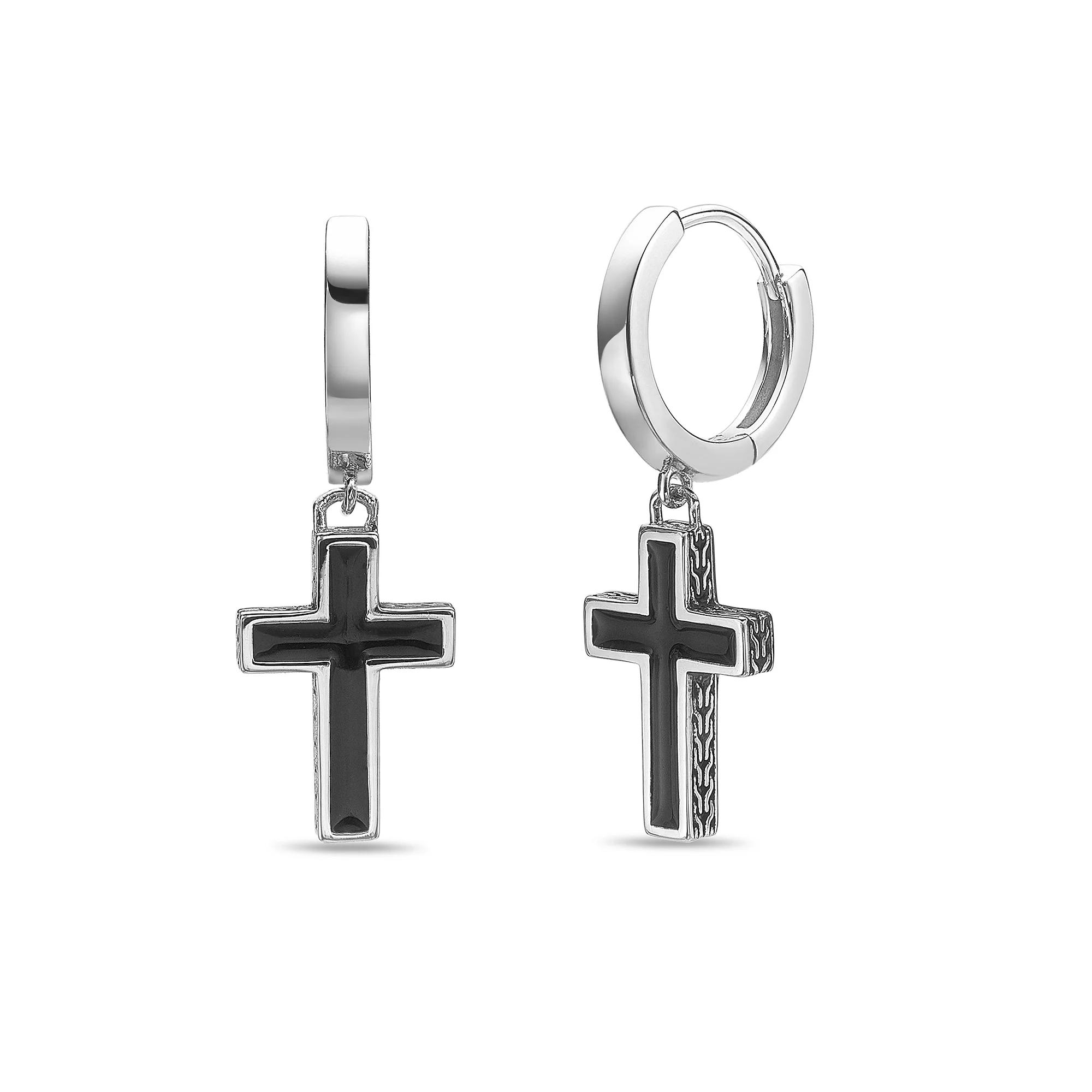 He'll add the finishing touch to his look with this men's LYNX sterling silver black enamel cross earrings. Click on this JEWELRY & WATCHES GUIDE to learn about fit, styles, materials and more! He'll add the finishing touch to his look with this men's LYNX sterling silver black enamel cross earrings. Click on this JEWELRY & WATCHES GUIDE to learn about fit, styles, materials and more! FEATURES Length: 26 mm Backings: huggie Nickel safe Metal: sterling silver Plating: rhodium Finish: polished Packaging: boxed Size: One Size. Color: Stainless. Gender: male. Age Group: adult. Material: Stainless Steel.