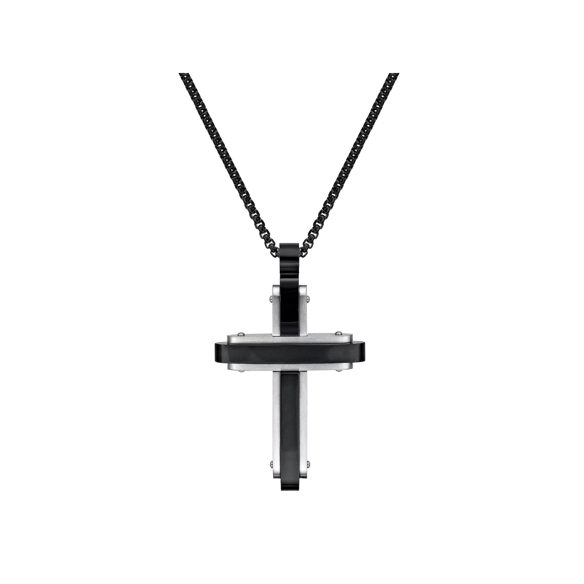 Display your faith in style in this two-tone black plated and polished stainless steel LYNX men's cross necklace. Display your faith in style in this two-tone black plated and polished stainless steel LYNX men's cross necklace. Chain length: 24 in. Chain type: box Pendant size: 1.97 in. x 1.18 in. Metal: stainless steel Plating: black ion plated Finish: polished Packaging: boxed Size: 24". Gender: male. Age Group: adult.