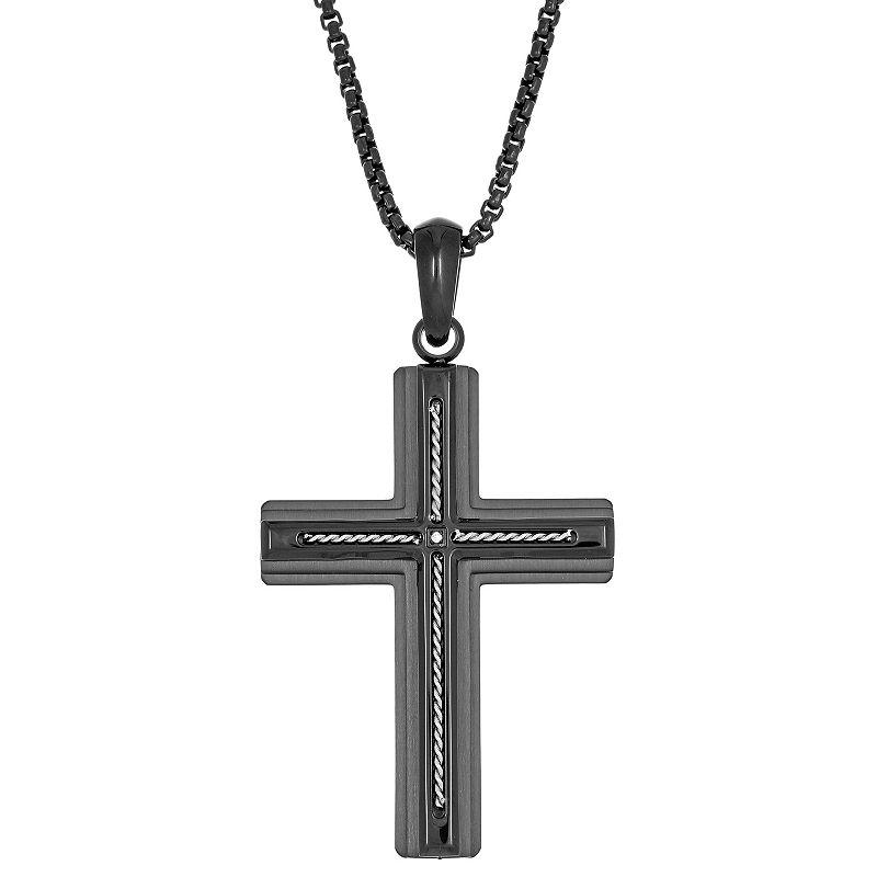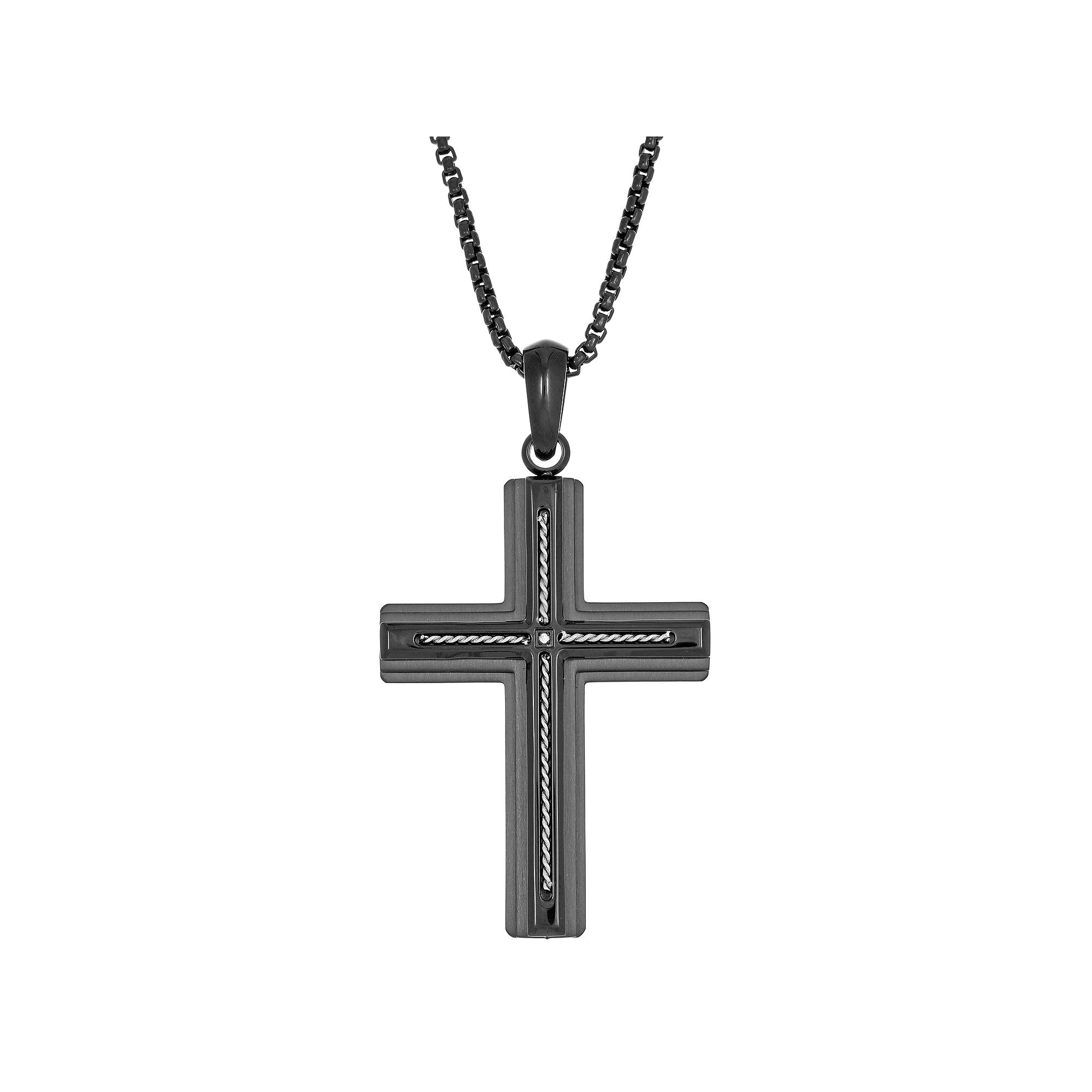 Featuring a cubic zirconia accent and cable details, this LYNX stainless steel cross pendant is a distinctive finishing touch to your look. Featuring a cubic zirconia accent and cable details, this LYNX stainless steel cross pendant is a distinctive finishing touch to your look. Pendant size: 2.32"L x 1.3"W Chain length: 24 in. Chain type: box Metal: stainless steel Plating: ion plated Finish: polished Packaging: boxedSTONE DETAILS Stone type: cubic zirconia Center stone size: 2 mm x 2 mm Shape: round Setting: prong Gemstones may have been treated to enhance their appearance. Special care may be required. Please visit our Gemstone Treatment & Special Care Guide for more information. Please note, due to the high value of this item, a signature may be required upon delivery. Size: 24". Color: White. Gender: male. Age Group: adult.