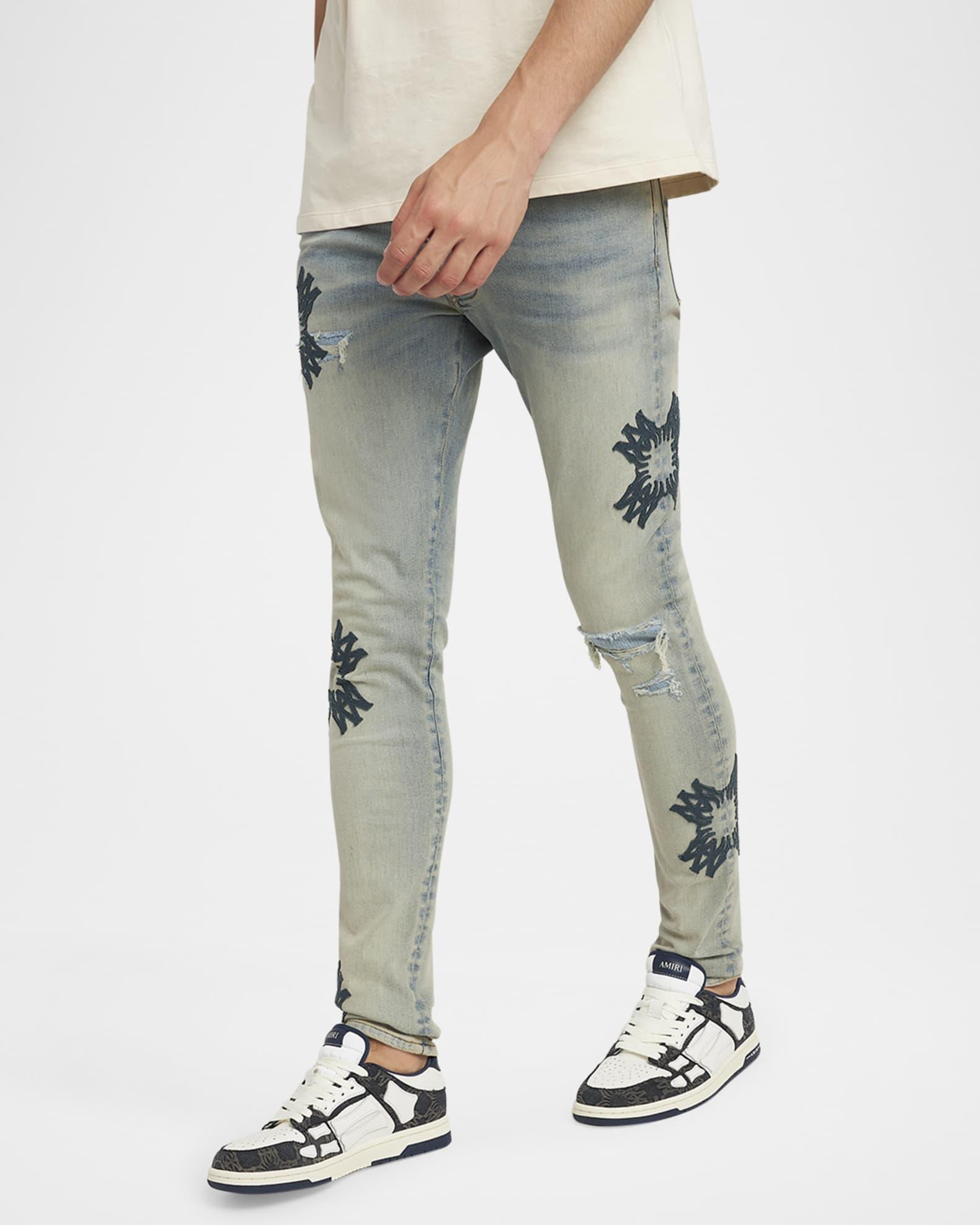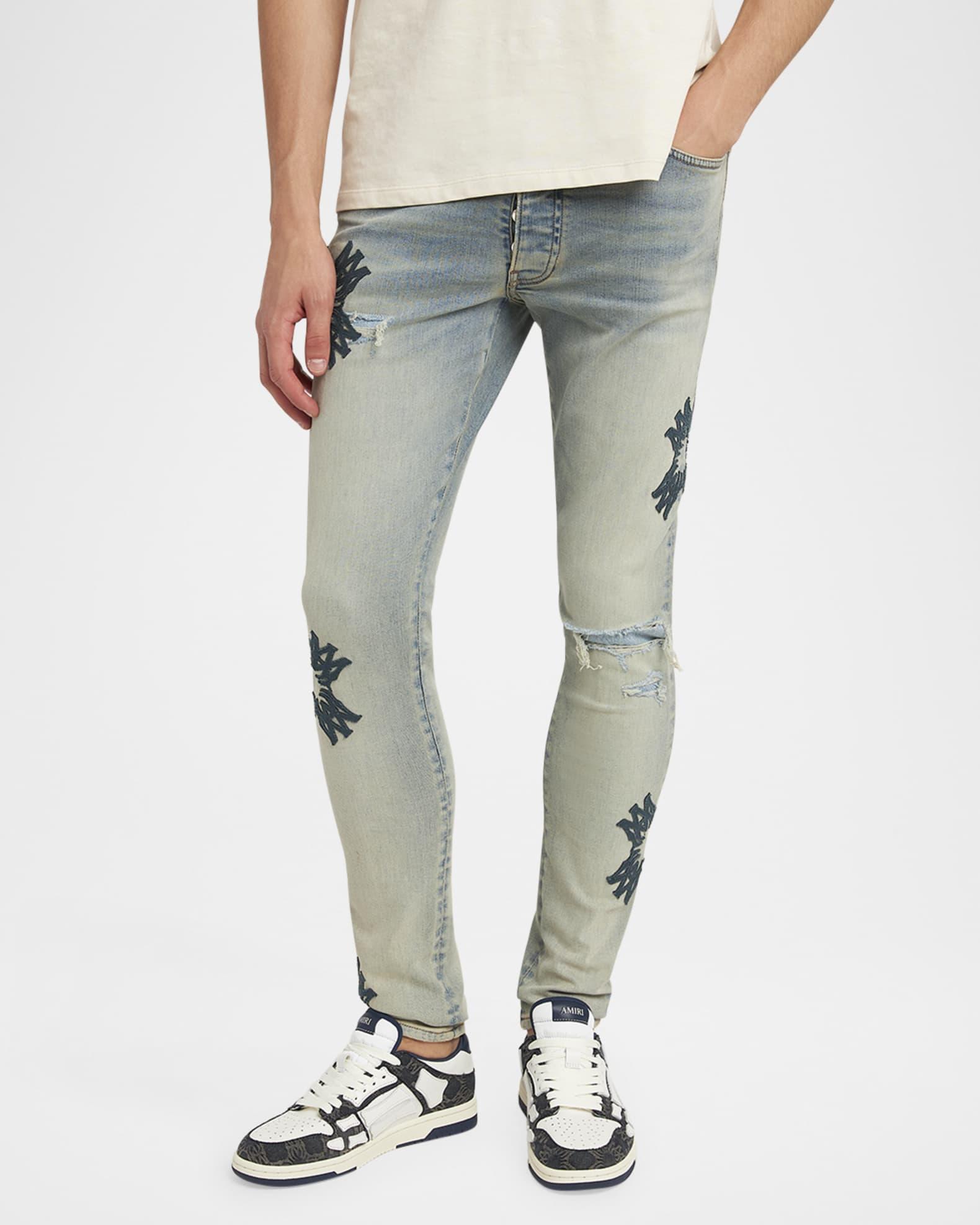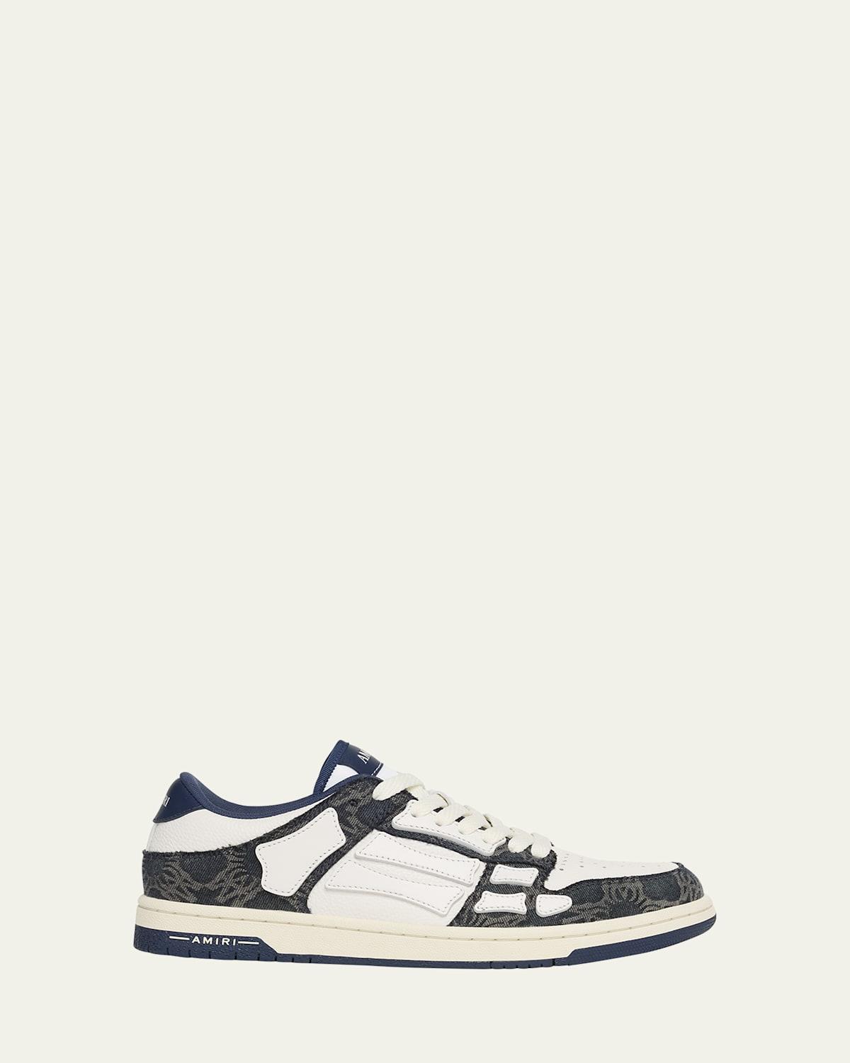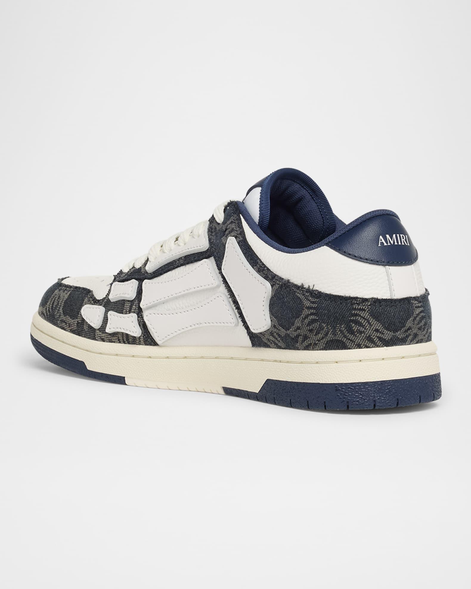 Amiri MA Quad Skel sneakers in smooth and grained leather with MA Quad monogram jacquard trim PreSpring 2025 collection Flat heel Perforated round toe Laceup vamp Logo on the tongue and backstay Padded collar Rubber outsole Imported
