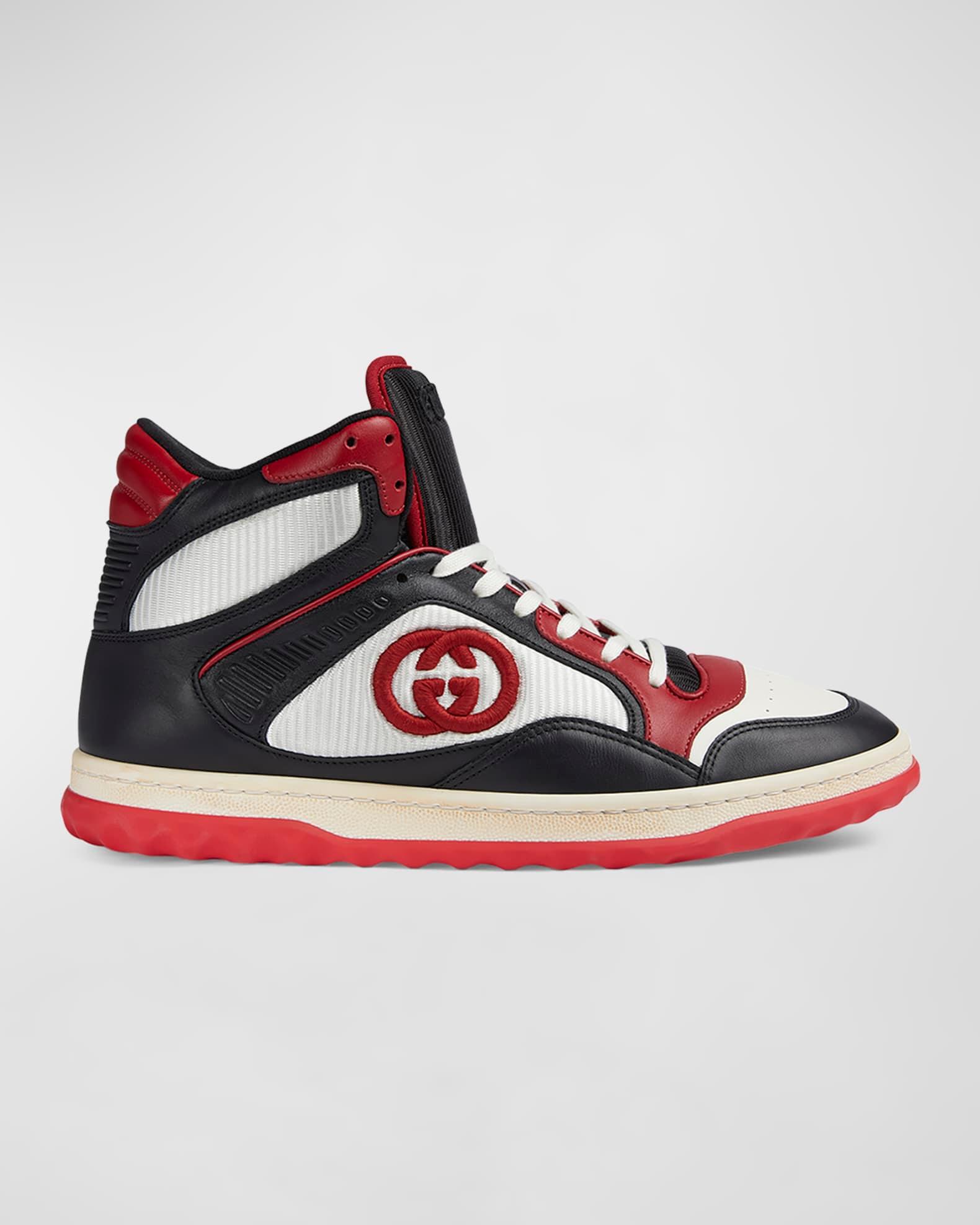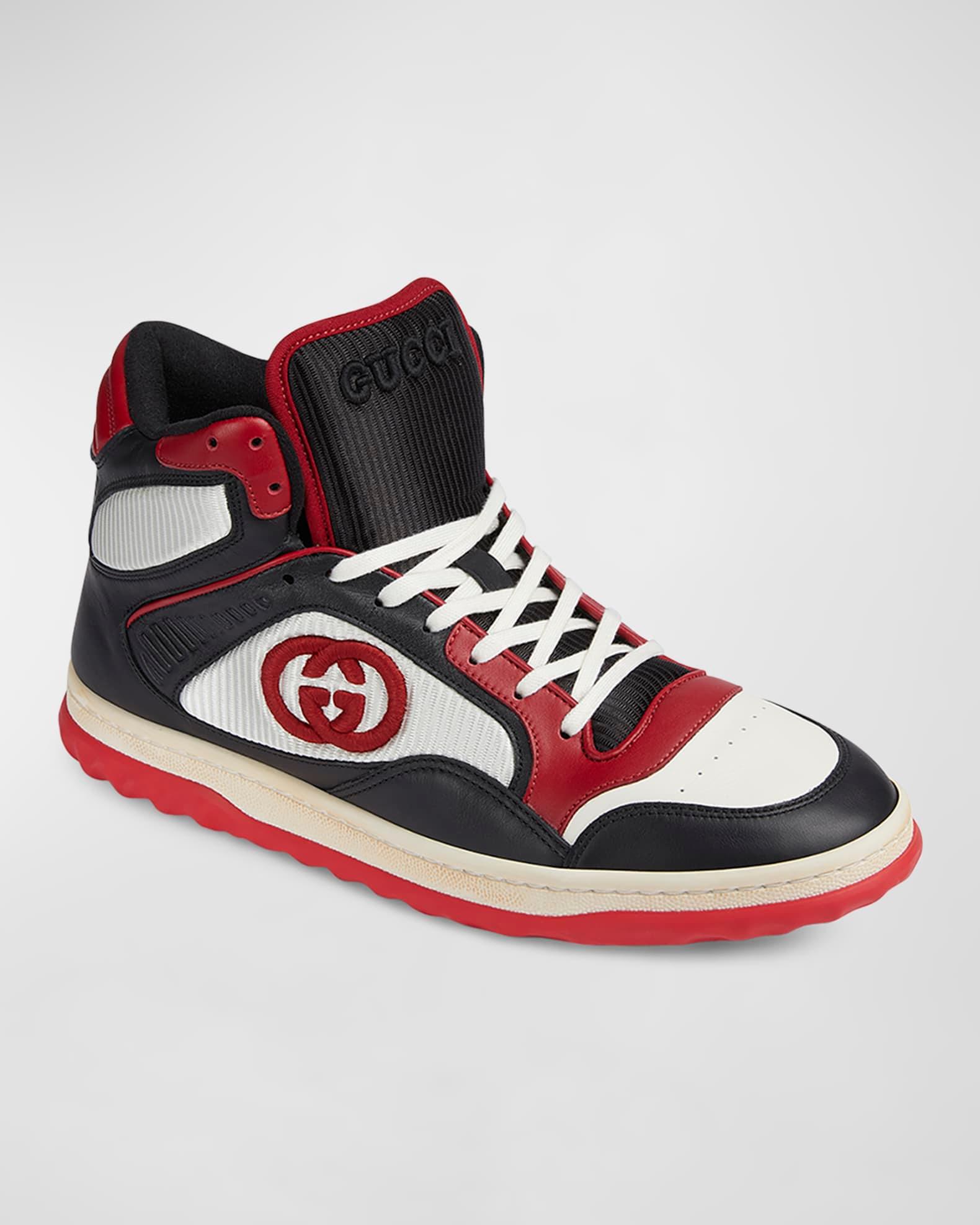 Gucci Mac 80 high-top sneakersin fabric and leather Features interlocking Gembroidery on the sides Flat heel Round toe Lace-up vamp Tongue with tonal embroidered logo lettering Quilted backstay Rubber outsole Additional pair of laces included Made in Italy