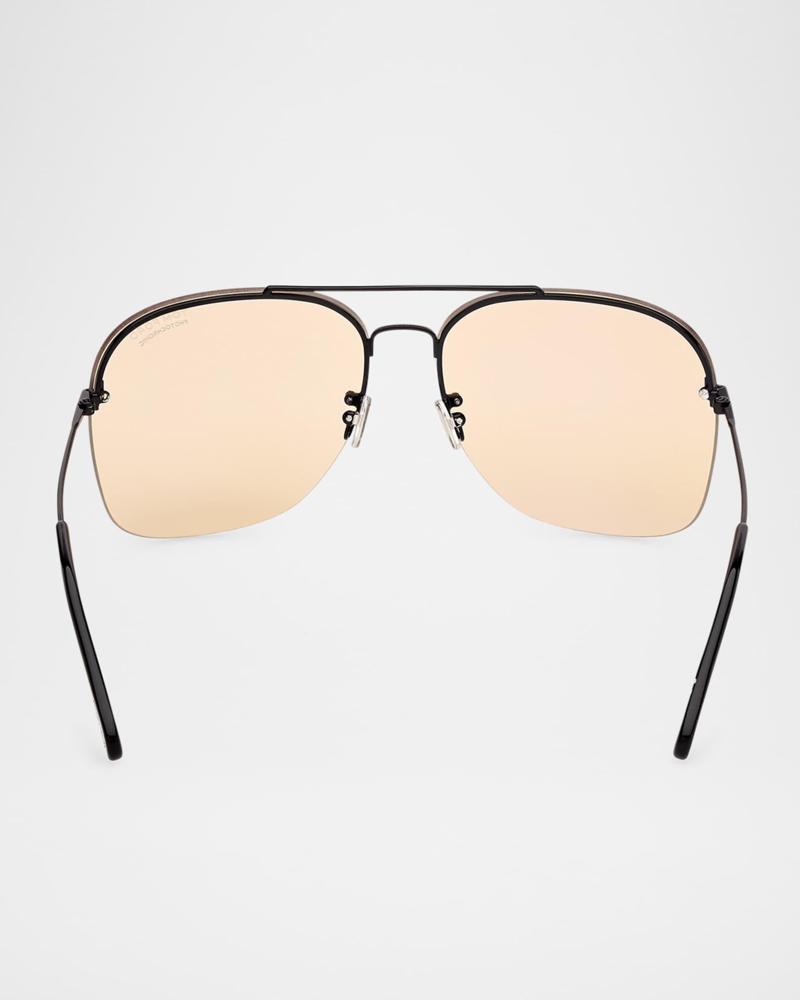 TOM FORD "Mackenzie-02" aviator sunglasses in durable metal Lens/bridge/temple (in mm): 64-15-140 Photochromic lenses Left lens logo script Double-nose bridge Adjustable nose pads Signature metal T temple decoration Thin arms Curved, capped temple tips Metal 100% UVA/UVB protection Made in Italy Proposition 65 warning for California residents