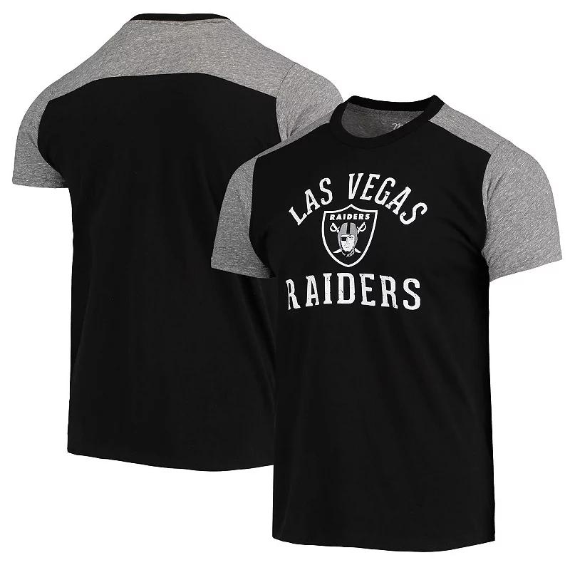 Create a winning Las Vegas Raiders outfit with this Field Goal T-shirt from Majestic Threads. Its two-tone design features Las Vegas Raiders graphics printed in a vintage look. Slub fabric also gives the contrasting sleeves, shoulders and back yoke a thicker, raised feel.