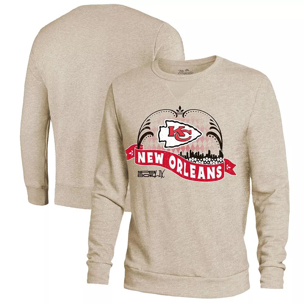 After a hard-fought season full of epic plays and clutch touchdowns, the Kansas City Chiefs have made it all the way to the Super Bowl! Get ready to cheer them on with this Oversized Fleece Sweatshirt from Majestic Threads. Featuring commemorative Kansas City Chiefs graphics, this piece is perfect for celebrating your favorite NFL team making it to Super Bowl LIX.After a hard-fought season full of epic plays and clutch touchdowns, the Kansas City Chiefs have made it all the way to the Super Bowl! Get ready to cheer them on with this Oversized Fleece Sweatshirt from Majestic Threads. Featuring commemorative Kansas City Chiefs graphics, this piece is perfect for celebrating your favorite NFL team making it to Super Bowl LIX.PRODUCT FEATURESOversized fitRib-knit cuffs and hemCrew neckMaterial: 60% Cotton/40% PolyesterOfficially licensedPulloverLong sleeveFleece lined for added warmthThis item is non-returnableBrand: Majestic ThreadsScreen print graphicsMidweight sweatshirt suitable for moderate temperatures Color: Beige. Gender: male. Age Group: adult.
