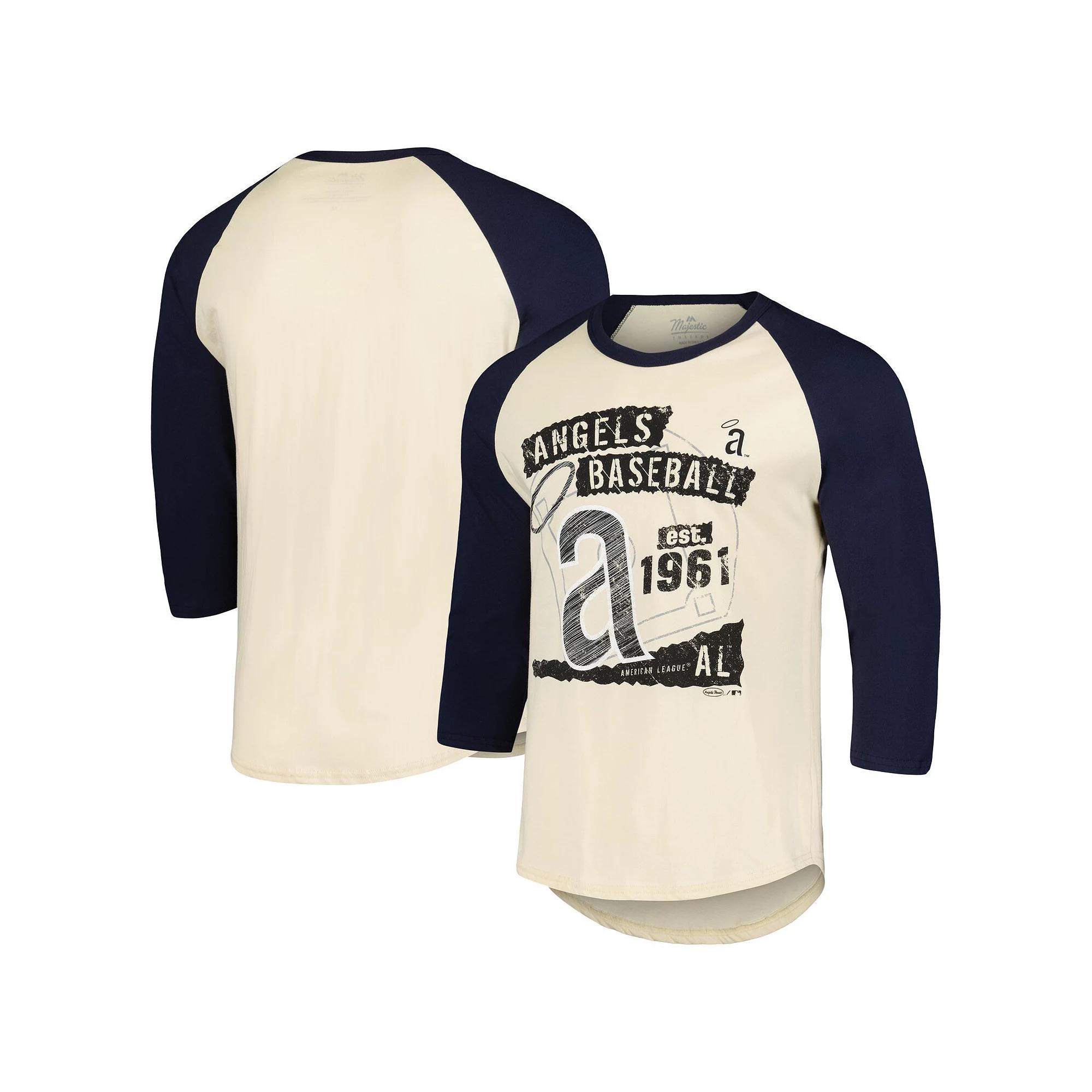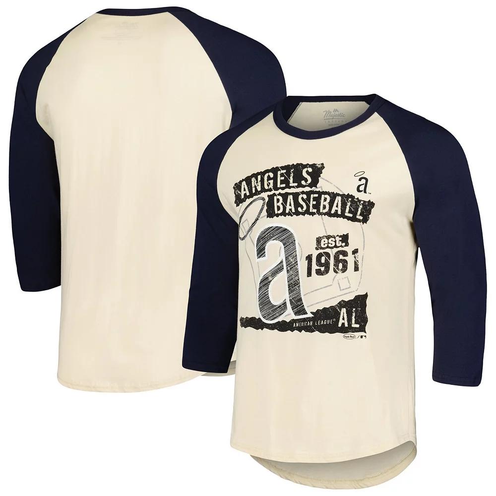 Express loyalty to your favorite MLB franchise with this Los Angeles Angels 3/4-sleeve T-shirt. Made by Majestic Threads, it features a large Los Angeles Angels logo printed in a vintage design. Contrast-color raglan sleeves create a sporty look and provide more flexible movement.Express loyalty to your favorite MLB franchise with this Los Angeles Angels 3/4-sleeve T-shirt. Made by Majestic Threads, it features a large Los Angeles Angels logo printed in a vintage design. Contrast-color raglan sleeves create a sporty look and provide more flexible movement.PRODUCT FEATURESOfficially licensed3/4 Length sleeveDistressed screen print graphicsMachine wash, tumble dry lowRounded hemRaglan sleevesMaterial: 100% CottonCrew neckBrand: Majestic Threads Color: Beige. Gender: male. Age Group: adult.