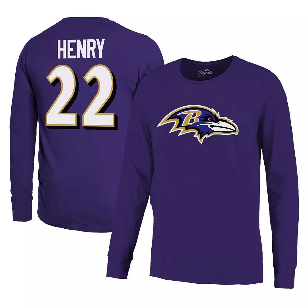 Show off your love for Derrick Henry and the Baltimore Ravens wherever you go with this Name & Number Long Sleeve T-Shirt from Majestic Threads. The shirts ultra-soft material will comfortable while you cheer your team to victory. Along with Derrick Henry and Baltimore Ravens graphics, this will quickly become your go-to long-sleeve shirt.Show off your love for Derrick Henry and the Baltimore Ravens wherever you go with this Name & Number Long Sleeve T-Shirt from Majestic Threads. The shirts ultra-soft material will comfortable while you cheer your team to victory. Along with Derrick Henry and Baltimore Ravens graphics, this will quickly become your go-to long-sleeve shirt.PRODUCT FEATURESScreen print graphicsLong sleeveBrand: Majestic ThreadsMaterial: 100% CottonMachine wash, tumble dry lowOfficially licensedCrew neck Color: Purple. Gender: male. Age Group: adult.