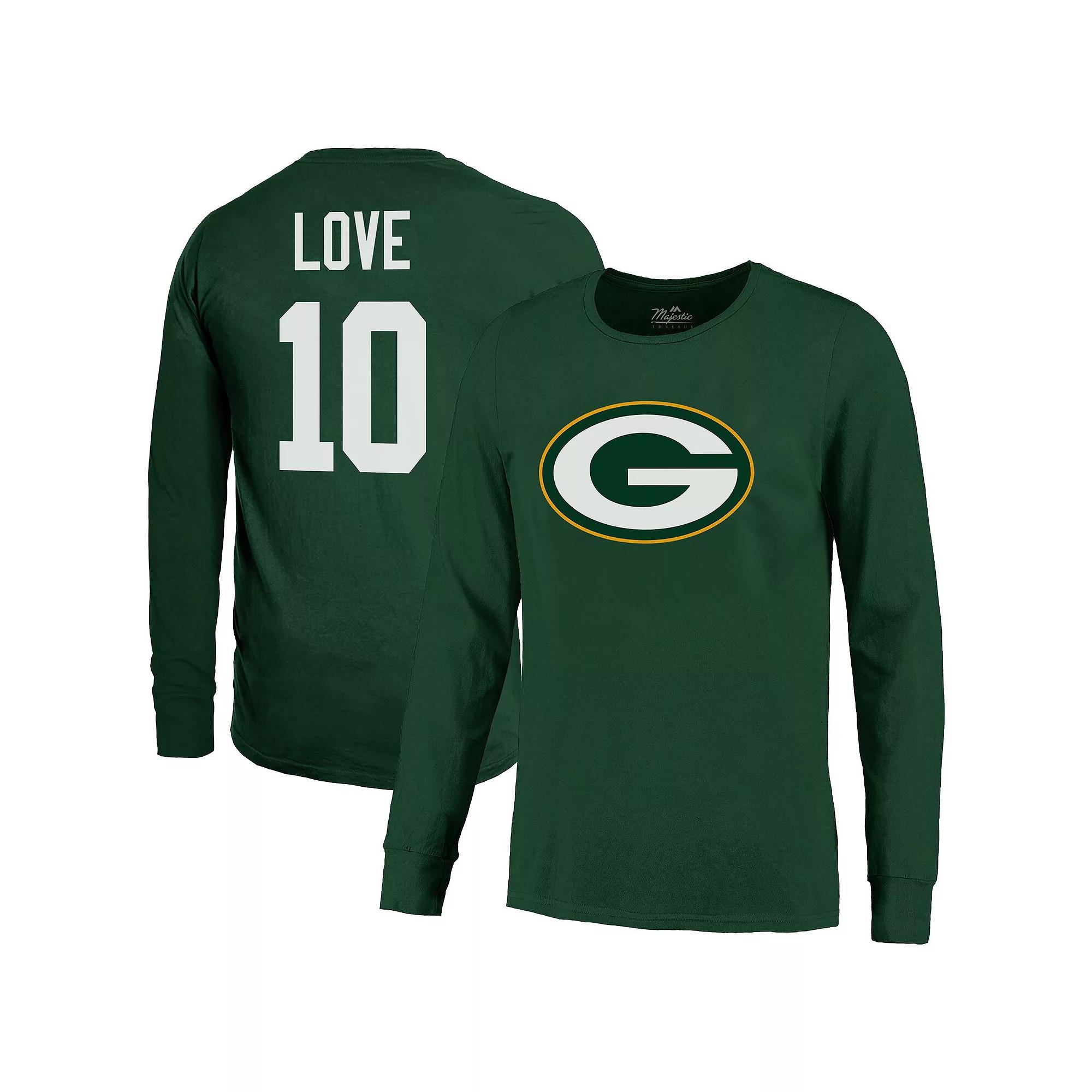 Cheer on the Green Bay Packers with this stylish Jordan Love Name & Number Long Sleeve T-Shirt from Majestic Threads. This long sleeve tee is made from 100% cotton for a super-soft feel that's perfect for everyday wear. With a screen printed Green Bay Packers logo on the front and Jordan Love's name and number displayed on the back, this shirt lets you rep your favorites in style.Cheer on the Green Bay Packers with this stylish Jordan Love Name & Number Long Sleeve T-Shirt from Majestic Threads. This long sleeve tee is made from 100% cotton for a super-soft feel that's perfect for everyday wear. With a screen printed Green Bay Packers logo on the front and Jordan Love's name and number displayed on the back, this shirt lets you rep your favorites in style.PRODUCT FEATURESMachine wash, tumble dry lowMaterial: 100% CottonLong sleeveCrew neckOfficially licensedBrand: Majestic ThreadsScreen print name and number on backScreen print team logo on front Size: 2XL. Gender: male. Age Group: adult.