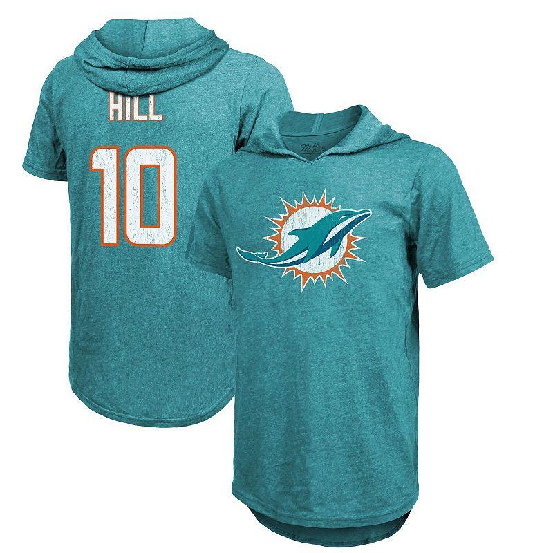 Tyreek Hill is your favorite player, and for good reason. Show him your support by grabbing this Miami Dolphins Player Name & Number Short Sleeve Hoodie T-Shirt from Majestic Threads. It features exciting Miami Dolphins and Tyreek Hill graphics, so no one will be able to question where your allegiance lies every time you rock this sweet gear.