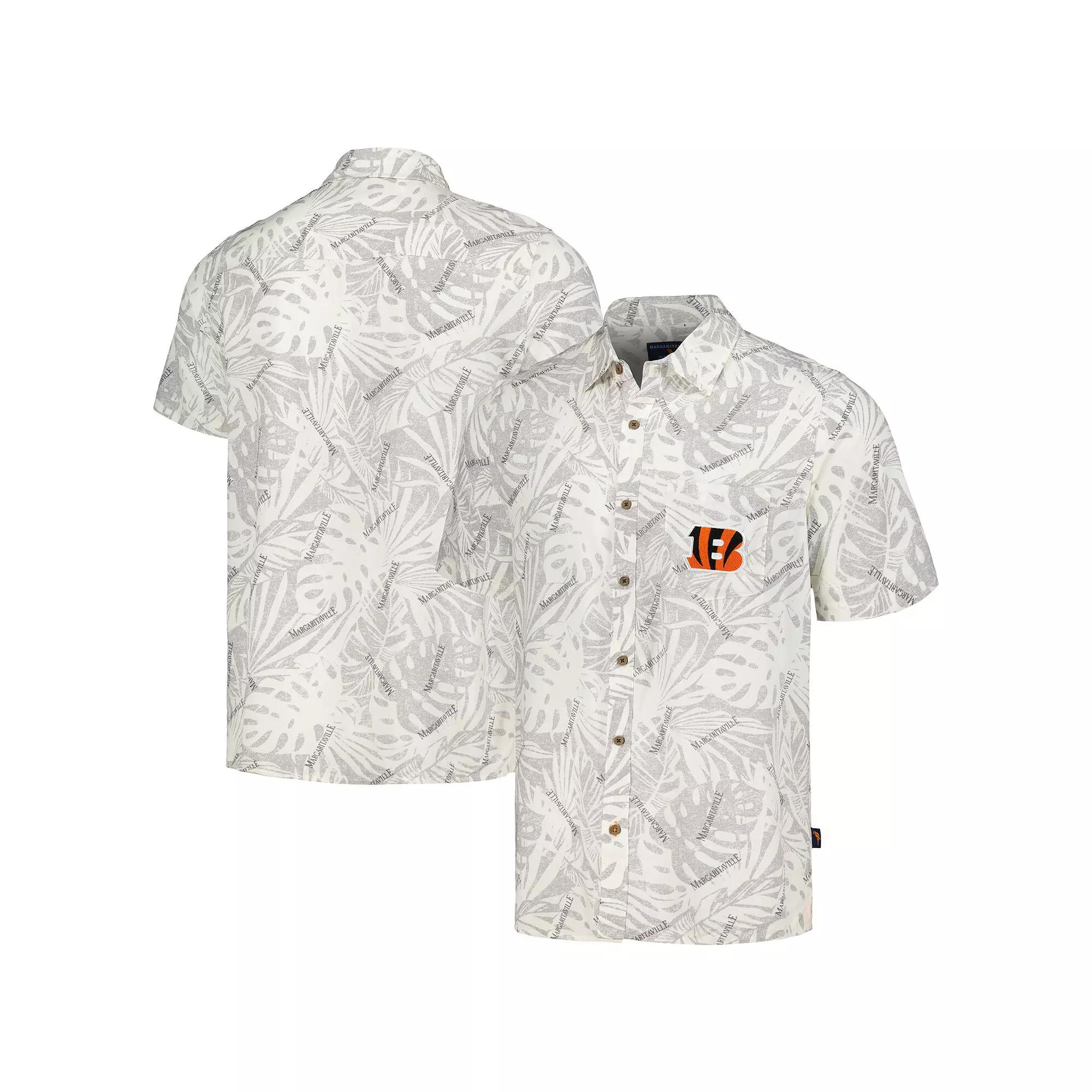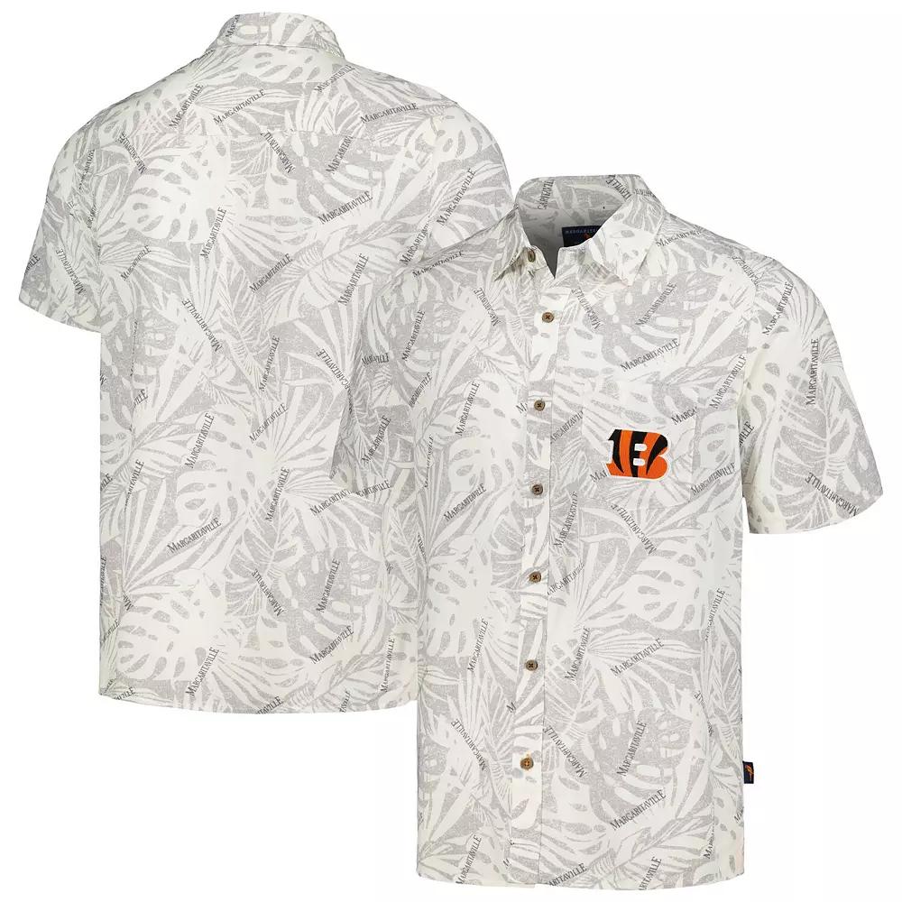 Show up when its game time and send your Cincinnati Bengals all the good vibes by grabbing this Sand Washed Monstera Print Party button-up shirt from Margaritaville. It features an eye-catching floral pattern on washed fabric along with a Cincinnati Bengals logo embroidered on the chest pocket that cant go unnoticed. Button this shirt or leave it unbuttoned to reveal your favorite team tee beneath for an added boost of team spirit.