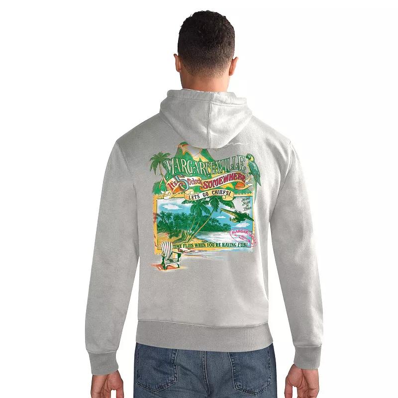 Grab this lively Kansas City Chiefs Time Flies Garment Dyed Pullover Hoodie and send your NFL favorites all the carefree vibes needed to house a big win. This Margaritaville tee's fun back graphic depict a parrot hold a flip-flop lets everyone know that nothing can get you down when it comes to your Kansas City Chiefs. Enjoy a sip of that frozen concoction that keeps you hanging on and be ready for anything the day brings each time you step out in this eye-catching pastel shirt.Grab this lively Kansas City Chiefs Time Flies Garment Dyed Pullover Hoodie and send your NFL favorites all the carefree vibes needed to house a big win. This Margaritaville tee's fun back graphic depict a parrot hold a flip-flop lets everyone know that nothing can get you down when it comes to your Kansas City Chiefs. Enjoy a sip of that frozen concoction that keeps you hanging on and be ready for anything the day brings each time you step out in this eye-catching pastel shirt.PRODUCT FEATURESLong sleeveOfficially licensedBrand: MargaritavilleImportedHoodedFront pouch pocketMachine wash, tumble dry lowScreen print Margaritaville graphics on backMidweight hoodie suitable for moderate temperaturesScreen print team logo at left chestMaterial: 100% CottonPullover Size: 2XL. Color: Grey. Gender: male. Age Group: adult.