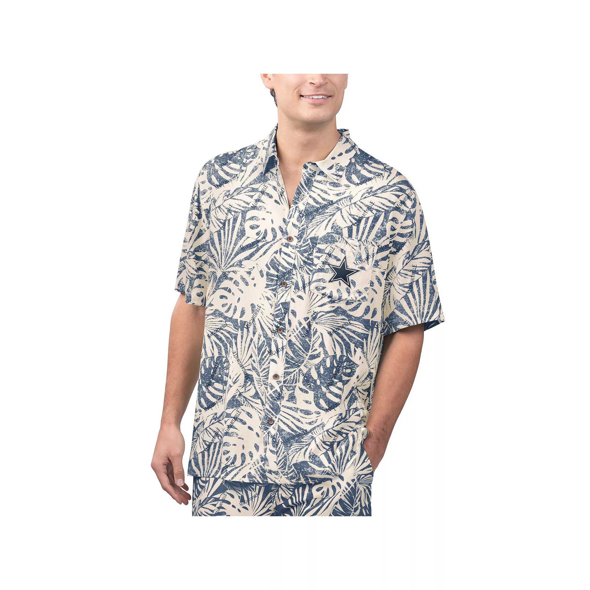 The Margaritaville Navy Dallas Cowboys Sand Washed Monstera Full-Button Party Shirt is the perfect way to show your support for the Dallas Cowboys. With its embroidered graphics and raised details, this shirt is sure to turn heads. The one chest pocket is perfect for storing your essentials, and the side splits at the bottom hem give it a relaxed and comfortable fit. Made from soft rayon, this shirt is perfect for any occasion, whether youre cheering on the Cowboys at the game or just relaxing at home.The Margaritaville Navy Dallas Cowboys Sand Washed Monstera Full-Button Party Shirt is the perfect way to show your support for the Dallas Cowboys. With its embroidered graphics and raised details, this shirt is sure to turn heads. The one chest pocket is perfect for storing your essentials, and the side splits at the bottom hem give it a relaxed and comfortable fit. Made from soft rayon, this shirt is perfect for any occasion, whether youre cheering on the Cowboys at the game or just relaxing at home.PRODUCT FEATURESSide splits at bottom hemFull-button frontEmbroidered graphics with raised detailsBrand: MargaritavilleOfficially licensedMaterial: 100% RayonShort sleeveMachine wash, tumble dry lowOne chest pocketImported Size: 2XL. Gender: male. Age Group: adult. Material: COTTON.