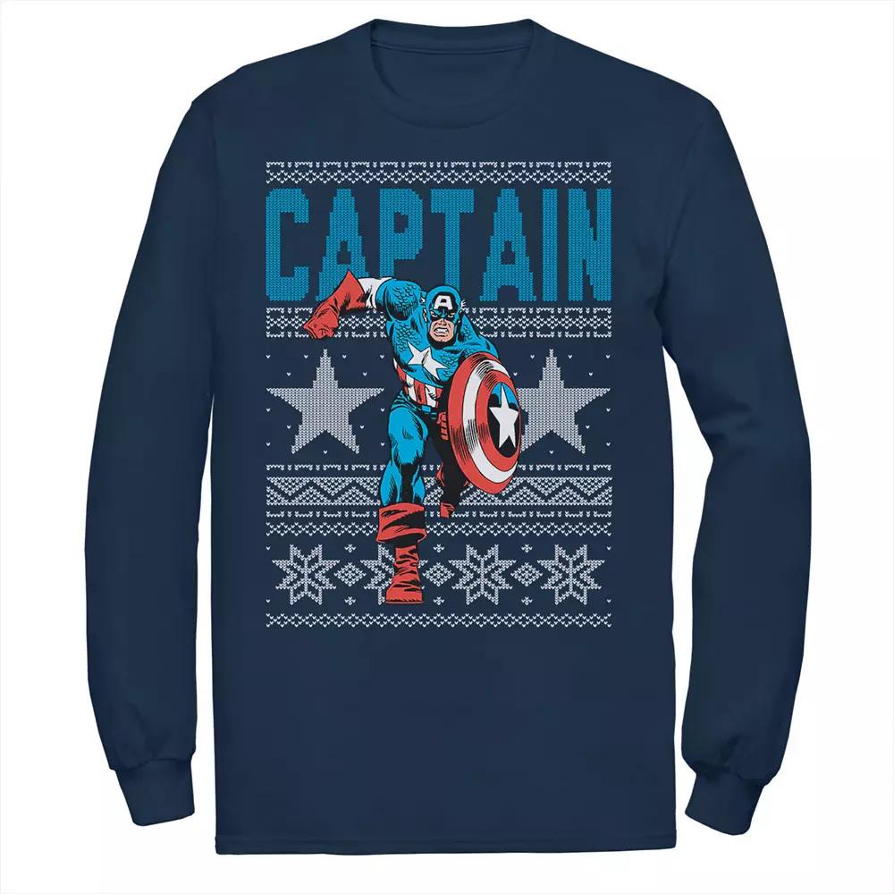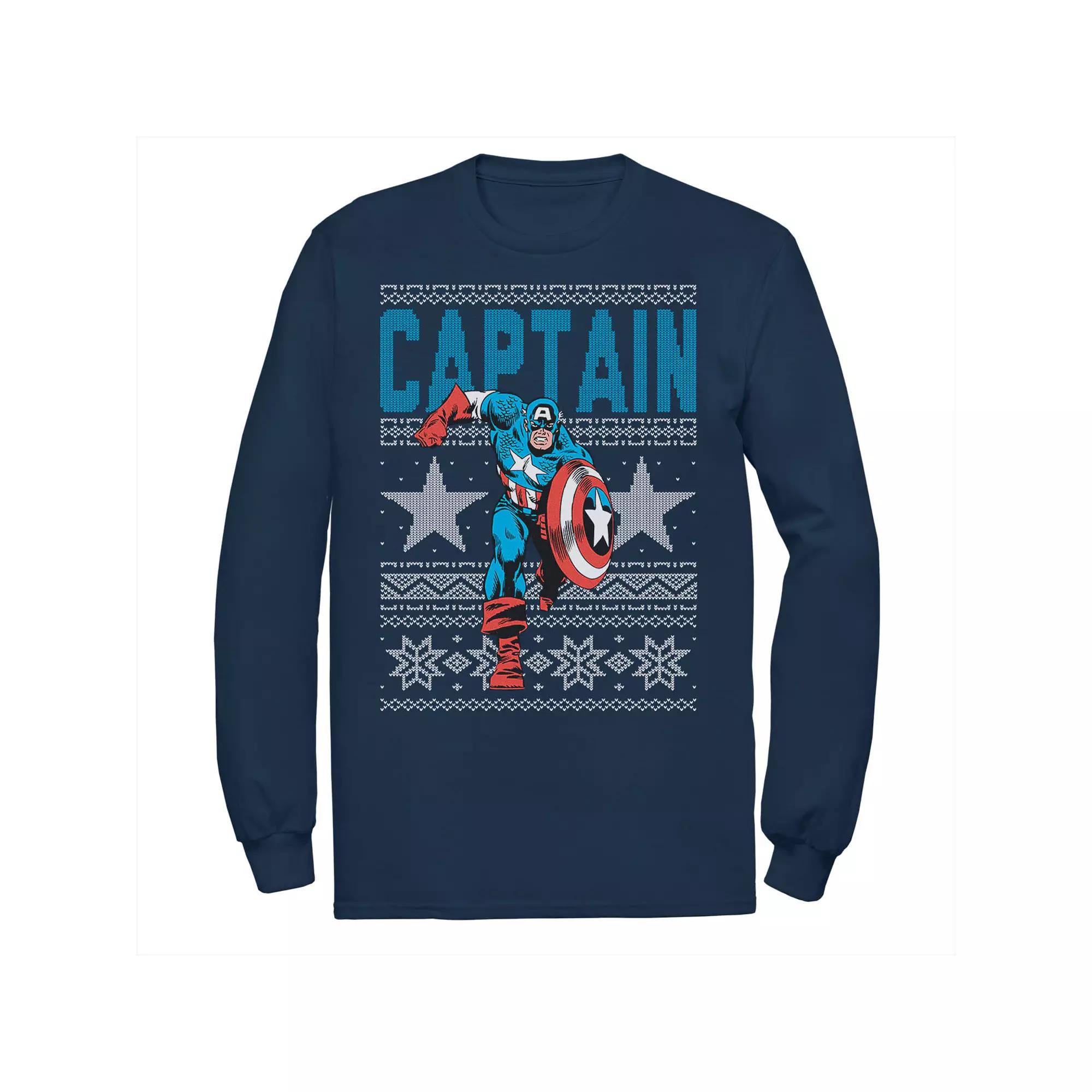 Show your love for Captain America with a holiday twist in this mens Marvel Ugly Christmas sweater tee. Show your love for Captain America with a holiday twist in this mens Marvel Ugly Christmas sweater tee. Crewneck Long sleevesFABRIC & CARE Cotton Machine wash Imported Color: Navy. Gender: male. Age Group: adult. Pattern: Graphic.