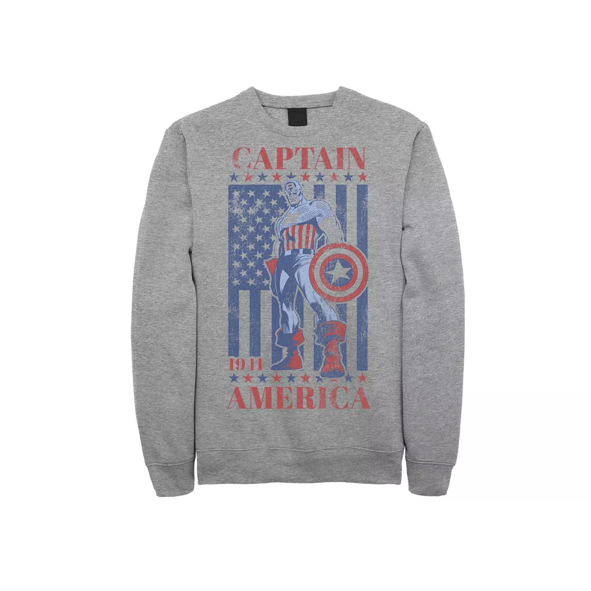 Stand tall and strong in this mens Marvel Captain America vintage flag 1941 fleece. Stand tall and strong in this mens Marvel Captain America vintage flag 1941 fleece. Long sleeves CrewneckFABRIC & CARE Cotton, polyester Machine wash Imported Color: Med Grey. Gender: male. Age Group: adult. Pattern: Graphic.