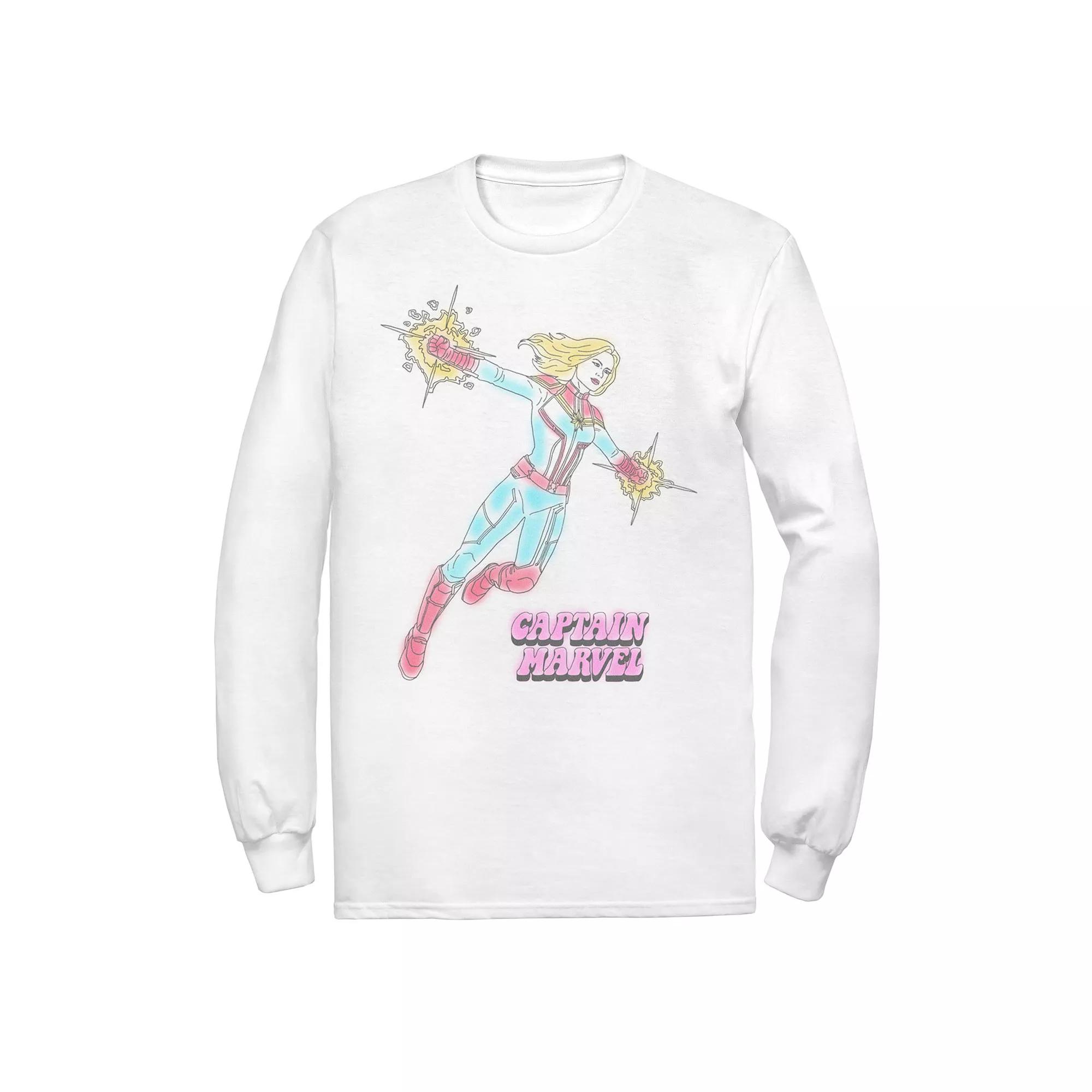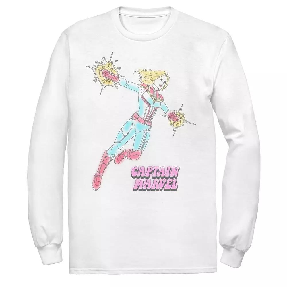 Men's Marvel Captain Marvel Colorful Star Outline Long Sleeve Graphic Tee,