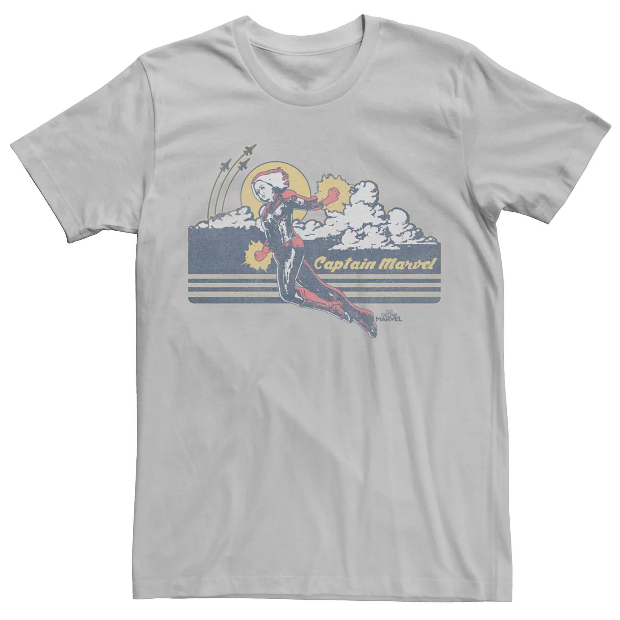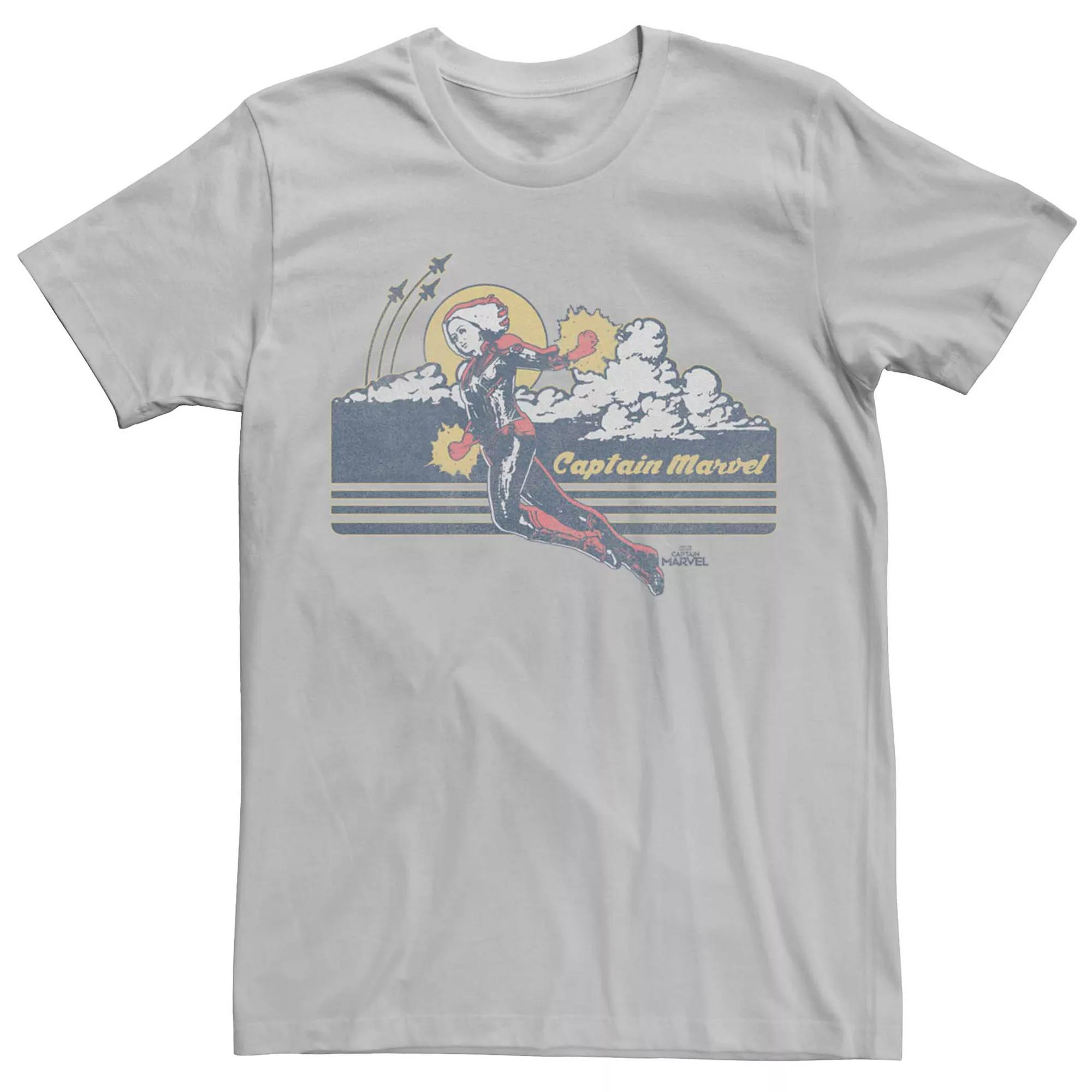 Show off your love for an iconic superhero with this Marvels Captain Marvel Sunset Flying Tee. Show off your love for an iconic superhero with this Marvels Captain Marvel Sunset Flying Tee. FABRIC & CARE Machine wash Cotton ImportedFIT & SIZING Short Sleeve Crew Neck Color: Silver. Gender: male. Age Group: adult.