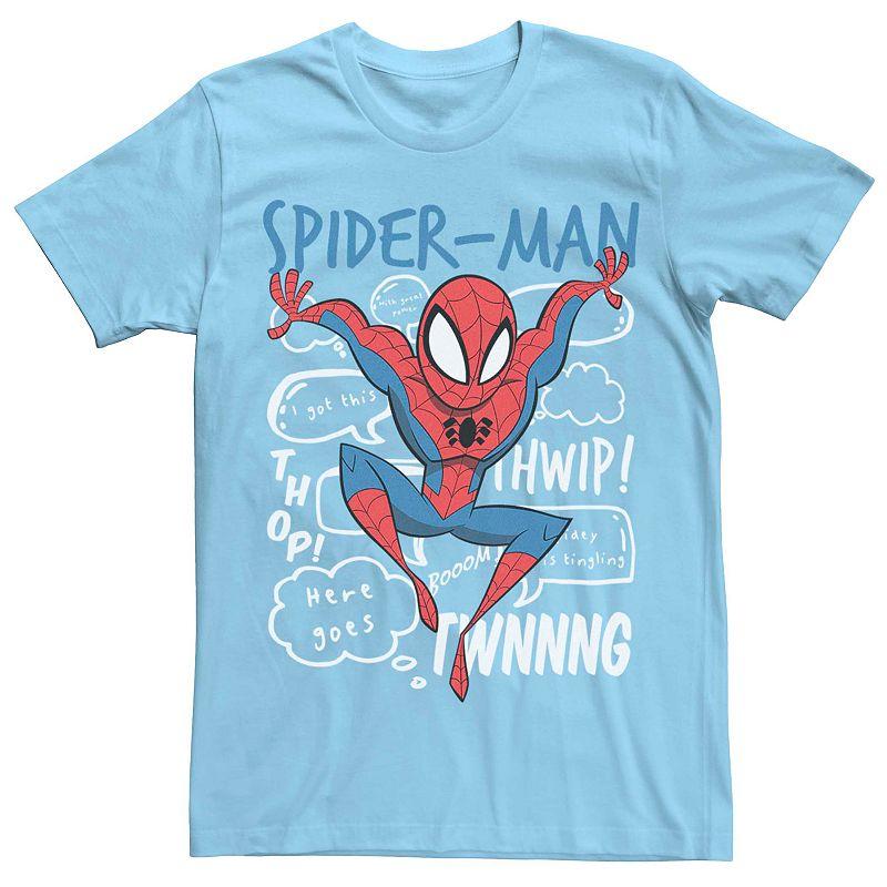 Sport a lighter take on this hero with the Marvels Spider-Man Doodle Speech Bubbles Tee. Sport a lighter take on this hero with the Marvels Spider-Man Doodle Speech Bubbles Tee. FABRIC & CARE Machine wash Cotton Imported Size: 3XL. Color: Light Blue. Gender: male. Age Group: adult. Pattern: Graphic.