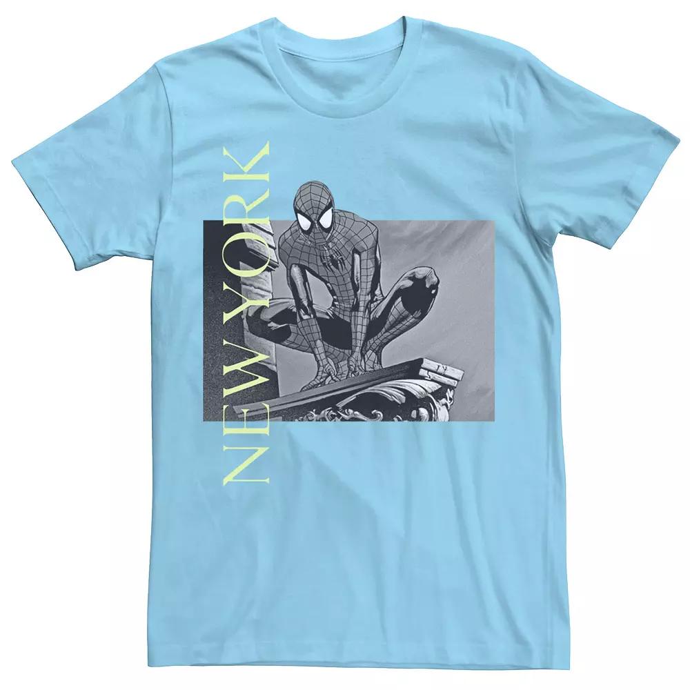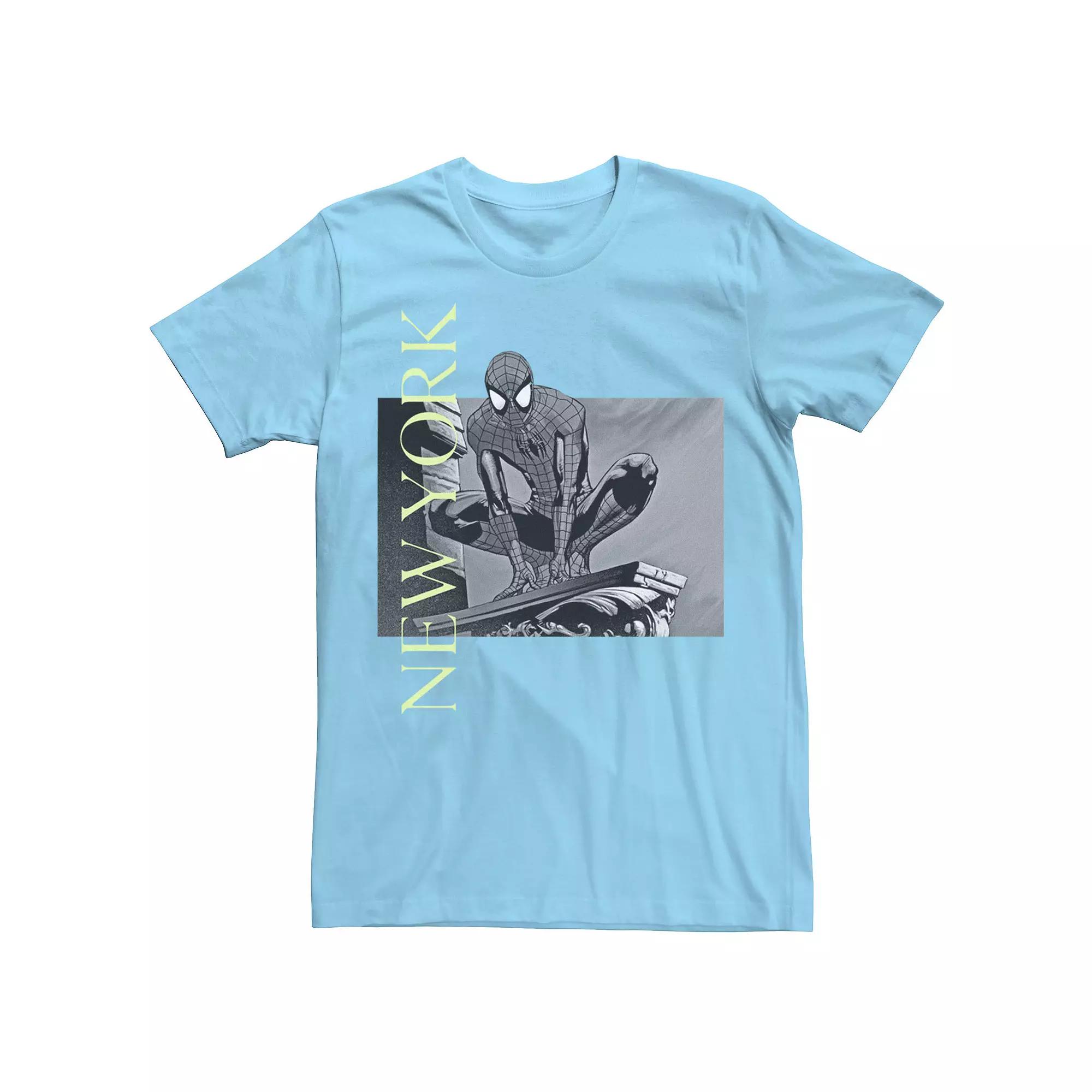 You'll be ready to swing into action wearing this men's Spider-Man tee. Crewneck Short sleevesFABRIC & CARE Cotton Machine wash Imported Color: Light Blue. Gender: male. Age Group: adult.