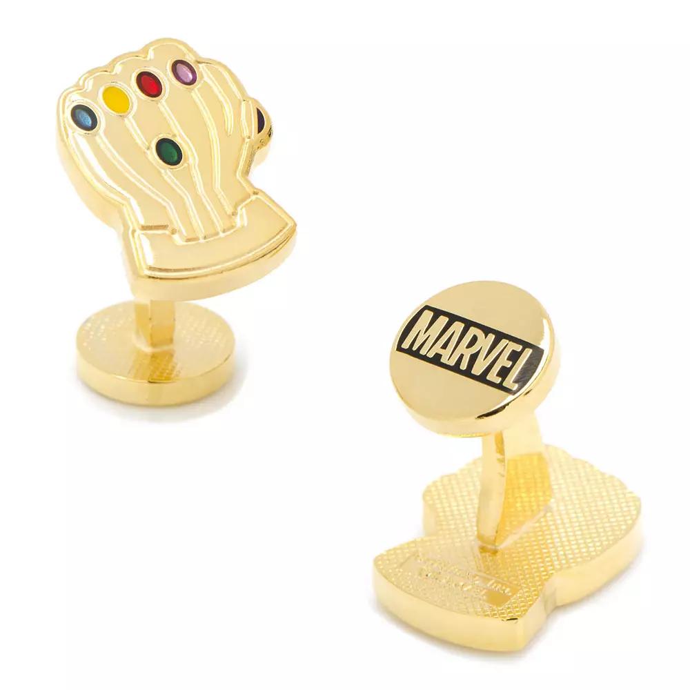 Conquer the world wearing these mens Marvel Thanos gauntlet cufflinks. Conquer the world wearing these mens Marvel Thanos gauntlet cufflinks. Gold-tone finish with 3-stones design Officially licensedFABRIC & CARE Wipe clean Imported Plated Base Metal Boxed for gifting 1/2 x 3/4 x 3/4 each Size: One Size. Gender: male. Age Group: adult.