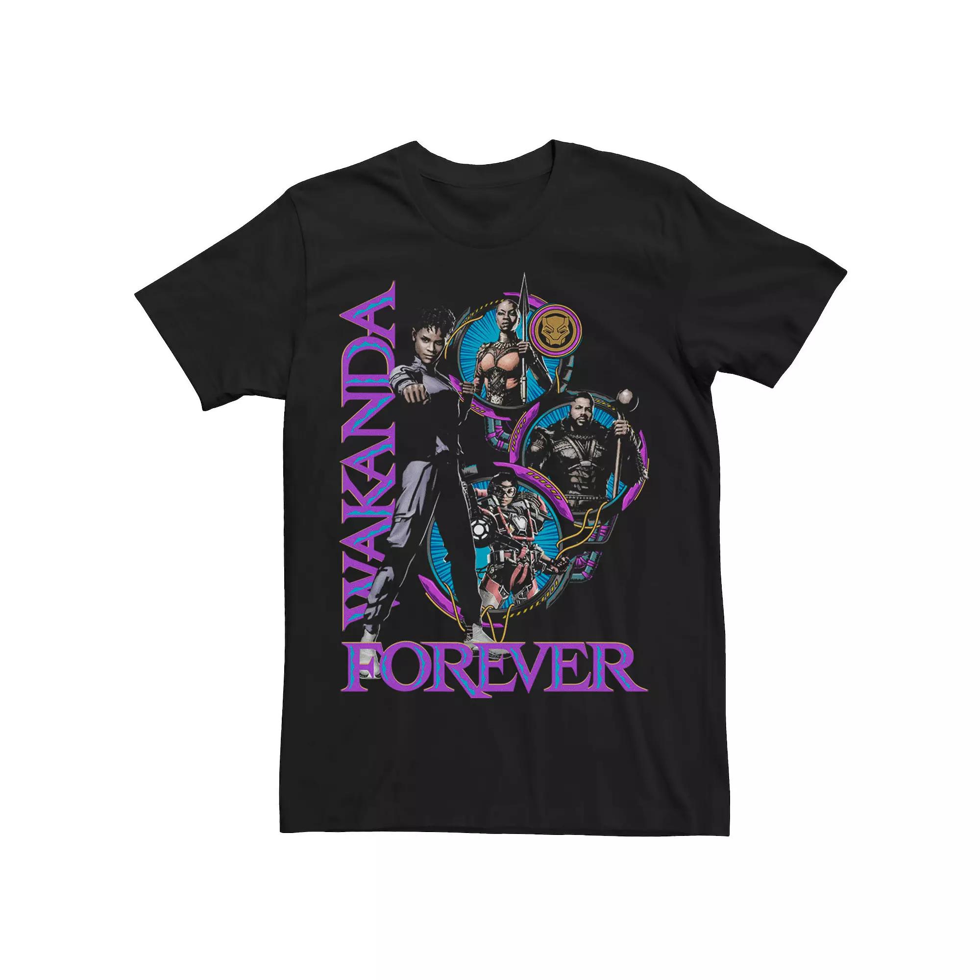 Wakanda will be forever when you wear this character groupshot collage tee. Wakanda will be forever when you wear this character groupshot collage tee. Crewneck Short sleevesFABRIC & CARE Cotton Machine wash Imported Size: L. Color: Black. Gender: male. Age Group: adult. Pattern: Graphic.